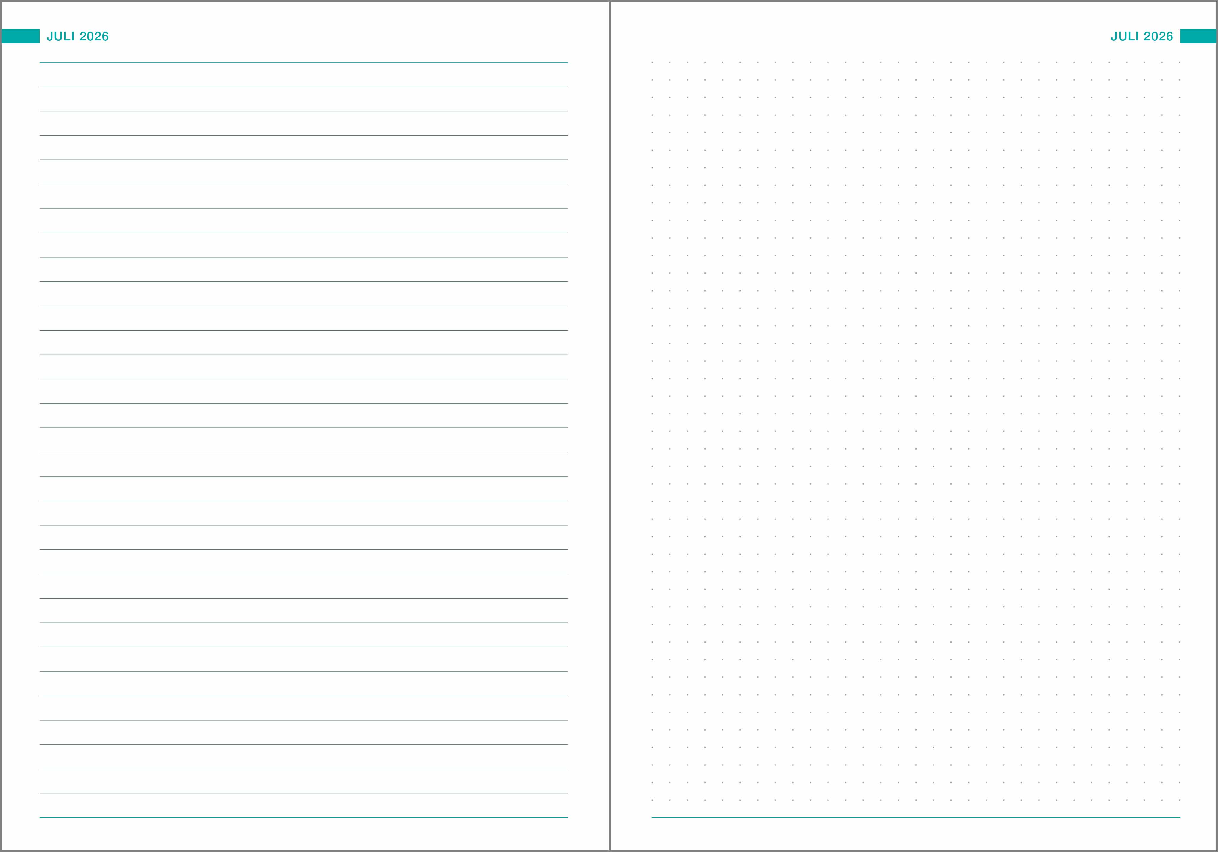 Dieses Journal enthält zwei Funktionen: einmal das Kalendarium in Form von Monatsübersichten von Juli 2026 bis Dezember 2027. Zugleich mit reichlich Raum für Notizen und To-Do-Feldern den Monaten zugeordnet. Ein kalendarisches Notizheft sozusagen.