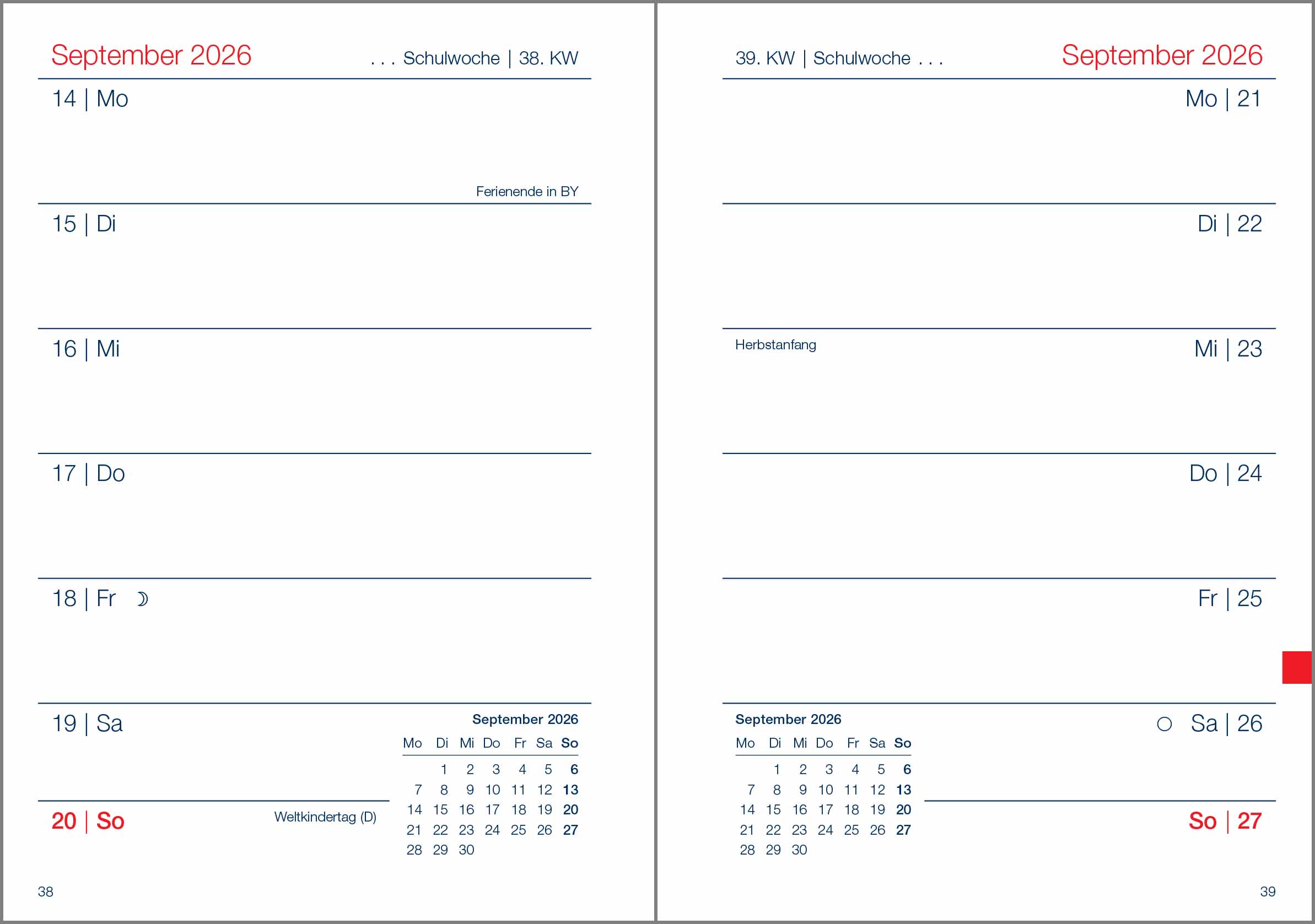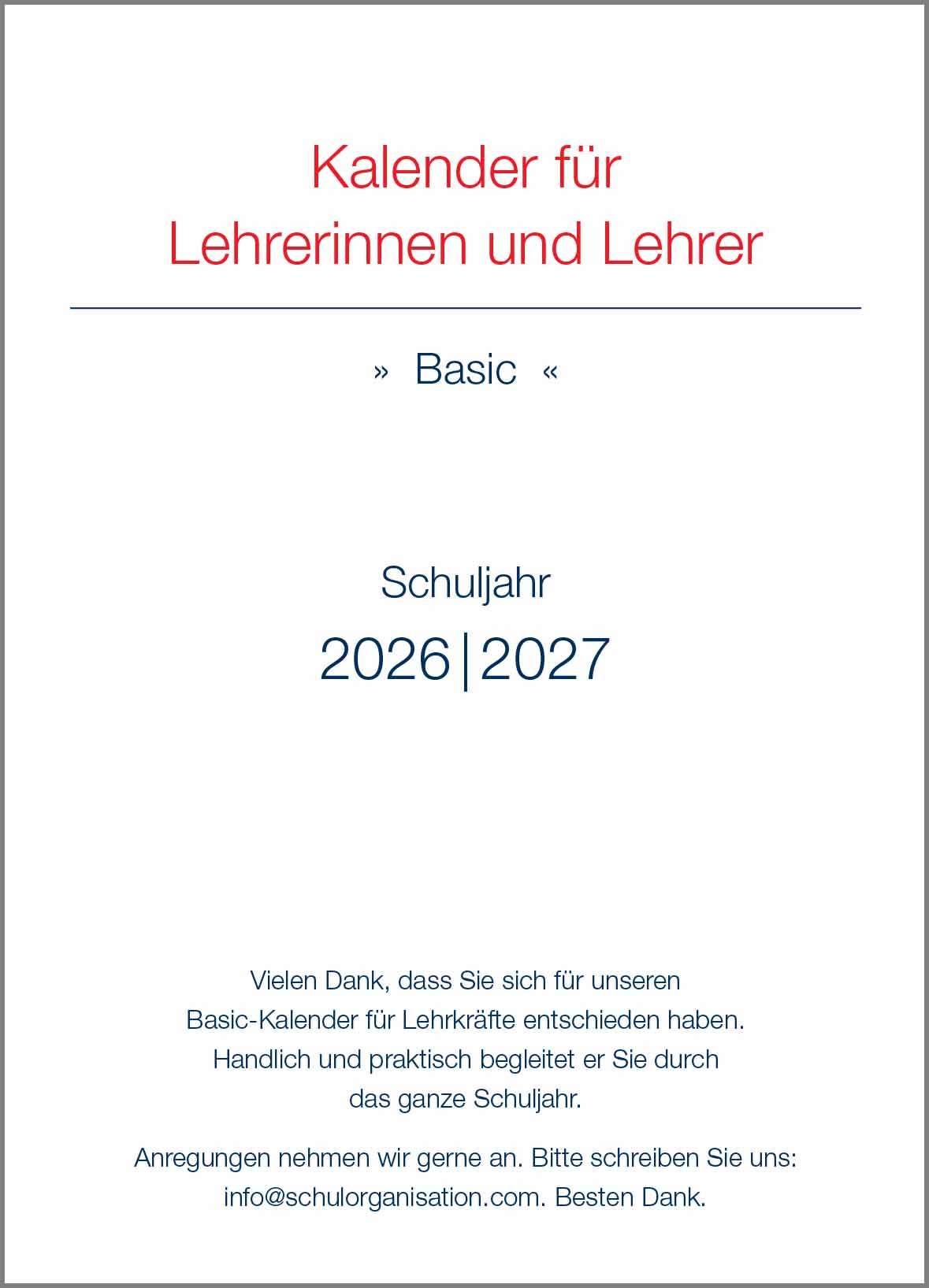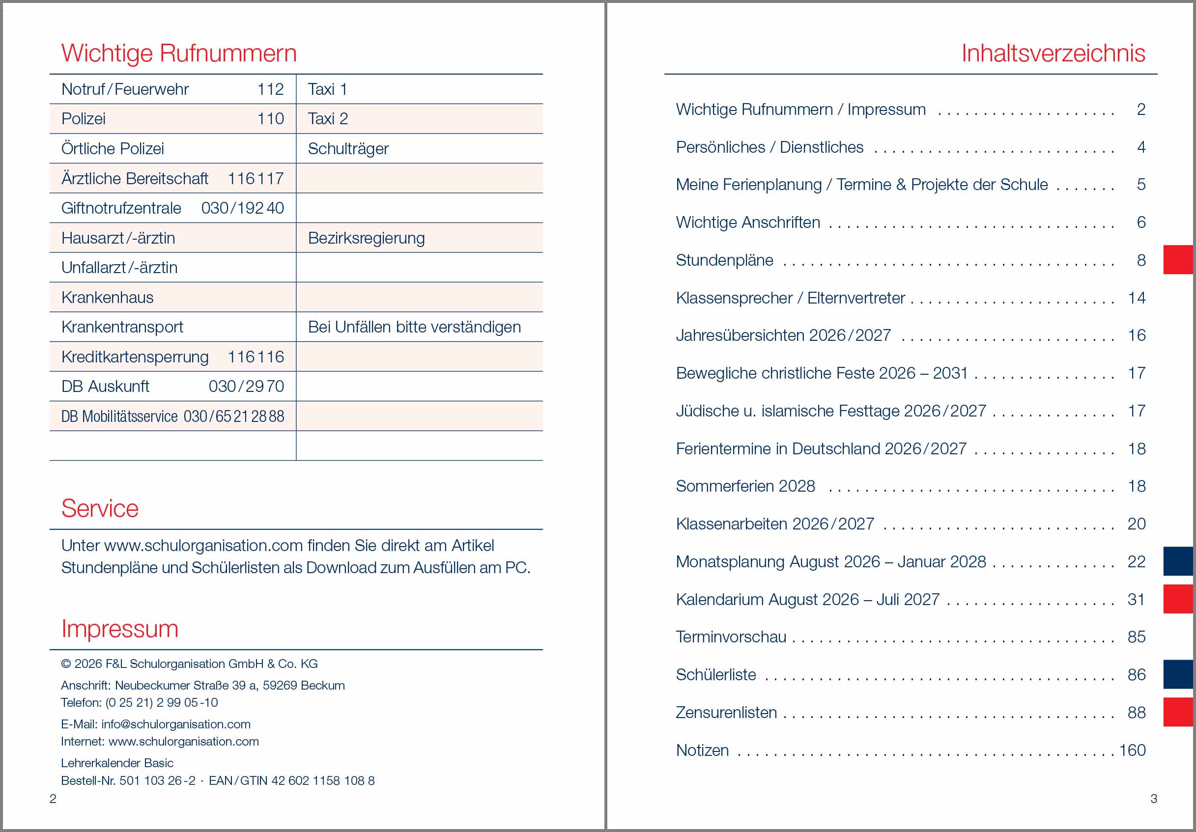 Lehrerkalender Basic rot Ausgabe 2026/2027