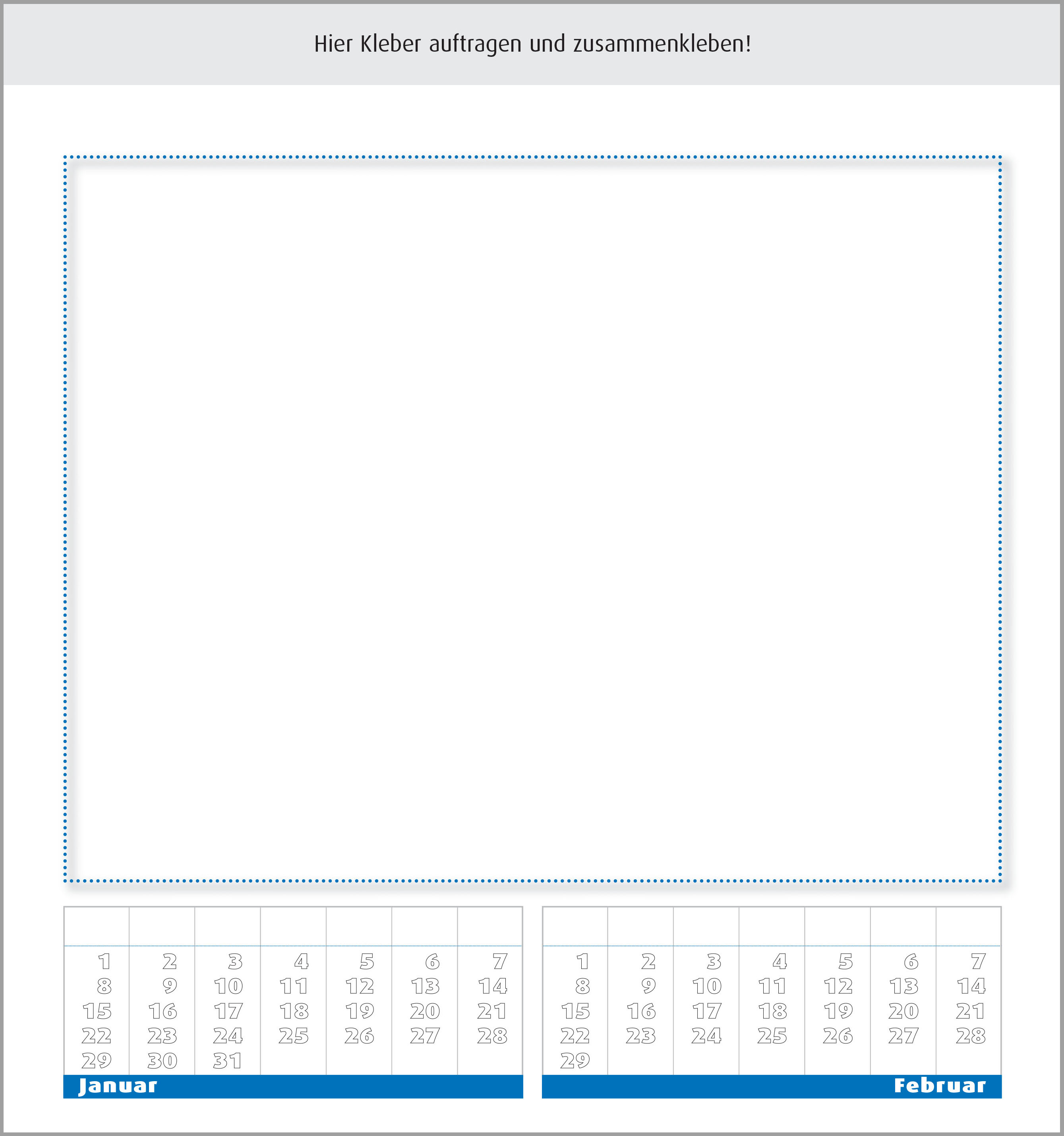 Der Kinder-Bastelkalender kann auf 6 Doppelmonatsblättern bemalt, beklebt oder bedruckt werden.