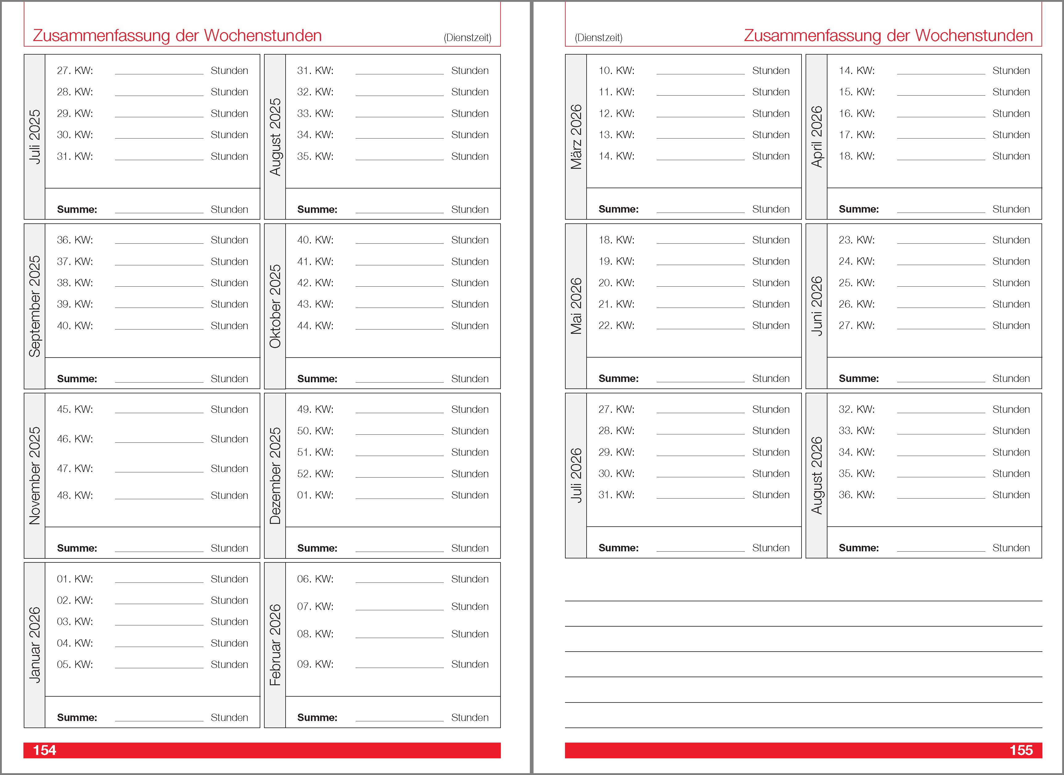 Zusammenfassung der Dienstzeiten nach Wochen und Monaten,
