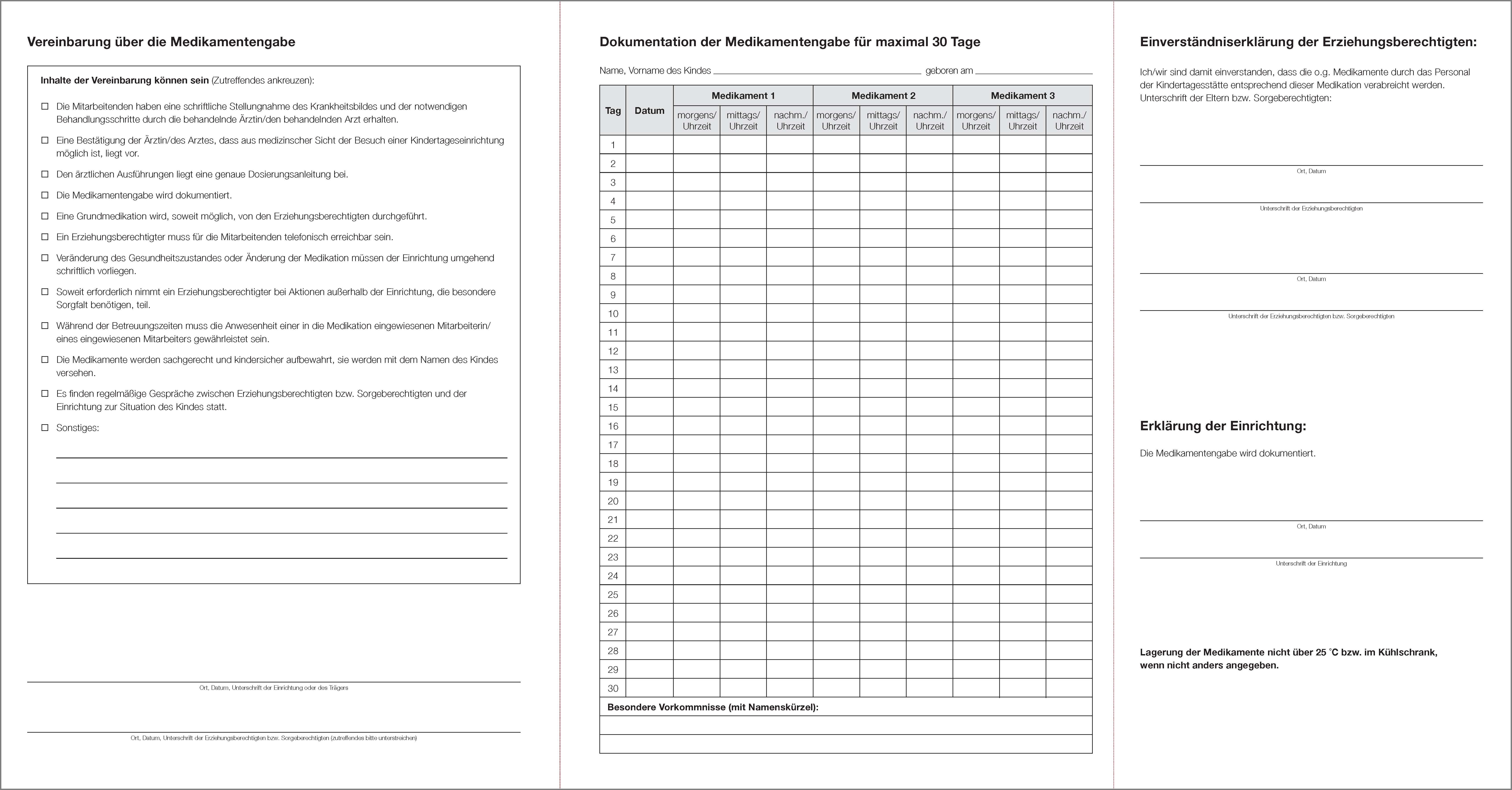 Auf diese Fragen und noch mehr gibt der handliche Faltbogen Antworten. Mit Texten zur schriftlichen Vereinbarung zwischen Eltern und Kita sowie Übersichten zur Medikation und Dokumentation.