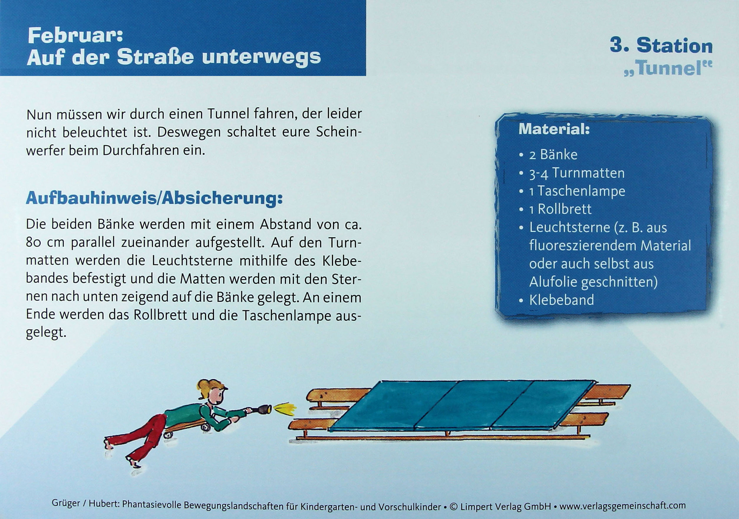 Die Förderung motorischer und kognitiver Fähigkeiten von Kindern kann nicht früh genug beginnen. Idealerweise geschieht das in Form von abwechslungsreichen und für Kinder abenteuerlich gestalteter Bewegungslandschaften. Diese Stationskarten basieren auf langjähriger Erfahrung der Autoren und beinhalten 75 Geräteaufbauten, die in 12 Bewegungslandschaften eingeteilt sind. Die Themen sind in den Jahreskreis eingebunden und erlauben stets einen Bezug zu den aktuellen jahreszeitlichen Ereignissen. Der Aufbau ist so strukturiert, dass Kinder im Alter von 3 bis 6 Jahren allein ohne elterliche Hilfe turnen können. Übungsleiter, Lehrkräfte und Erzieher erhalten zu jeder Station Hinweise zu den Förderschwerpunkten sowie weiteren Bewegungsideen.