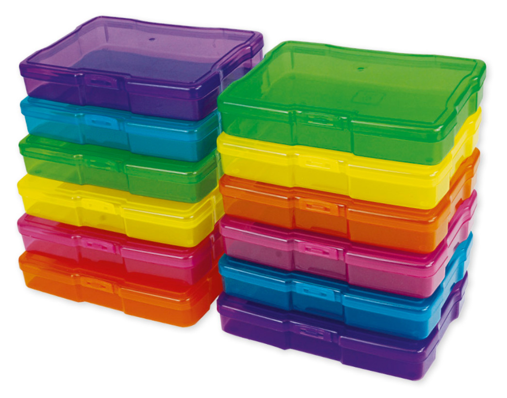 Die 12 Boxen befinden sich in einem großen transparenten Kunststoff-Koffer, der sowohl separat als auch zur Aufbewahrung und zum Transport der Boxen verwendet werden kann.