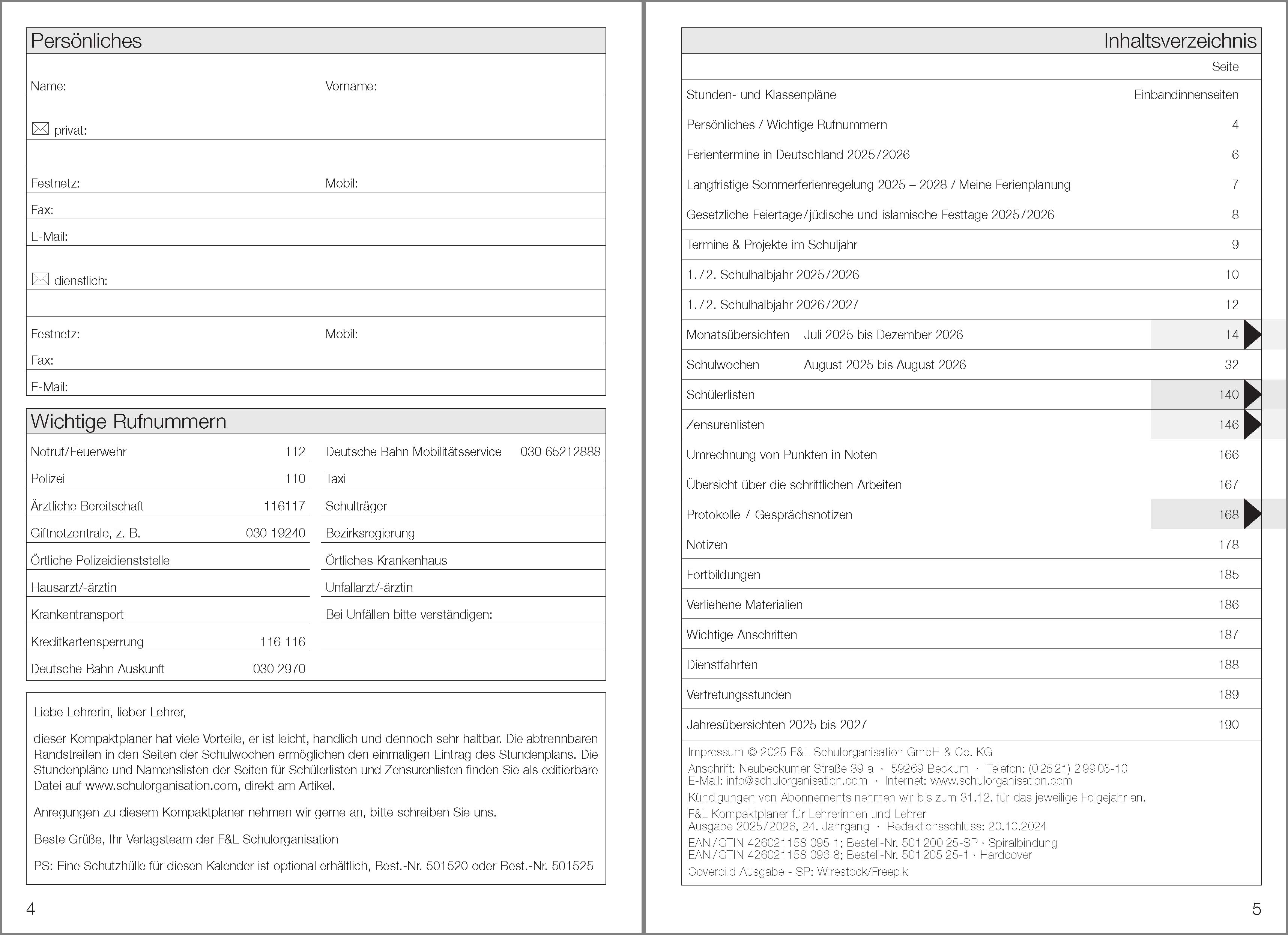 Lehrerkalender Kompaktplaner HC Ausgabe 2025/2026