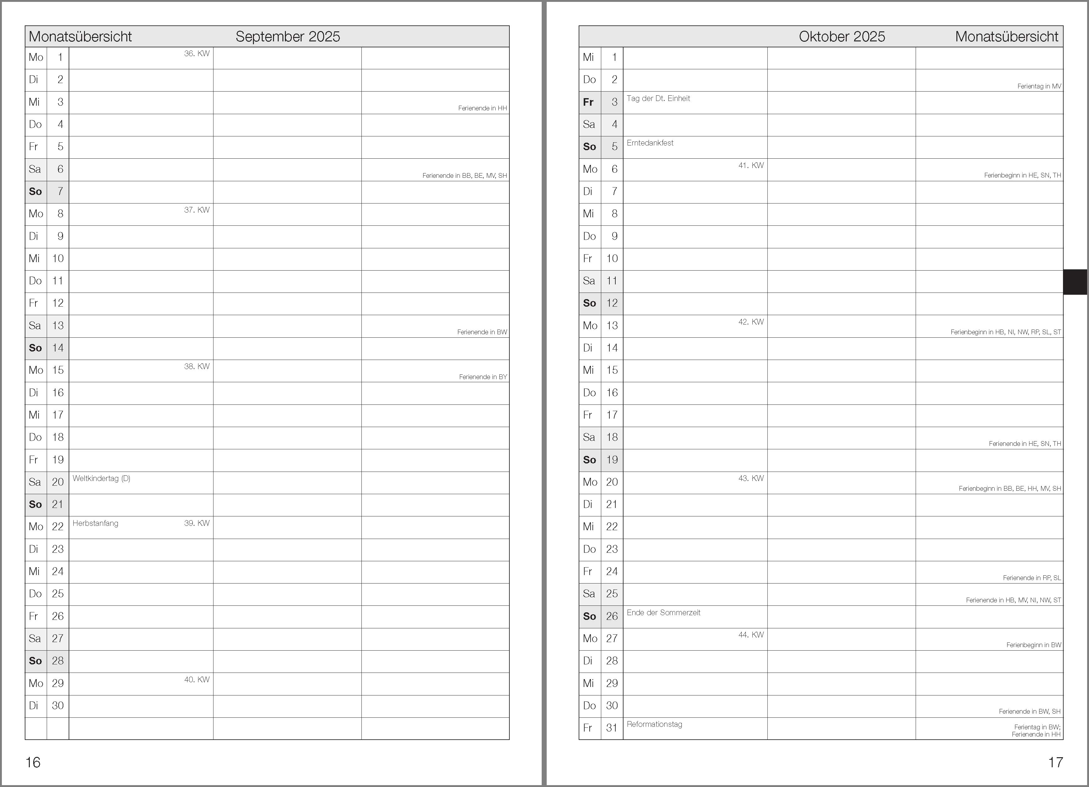 Mit jährlich wechselndem Titelmotiv, Wire-O-Bindung (ähnlich Spiralbindung)