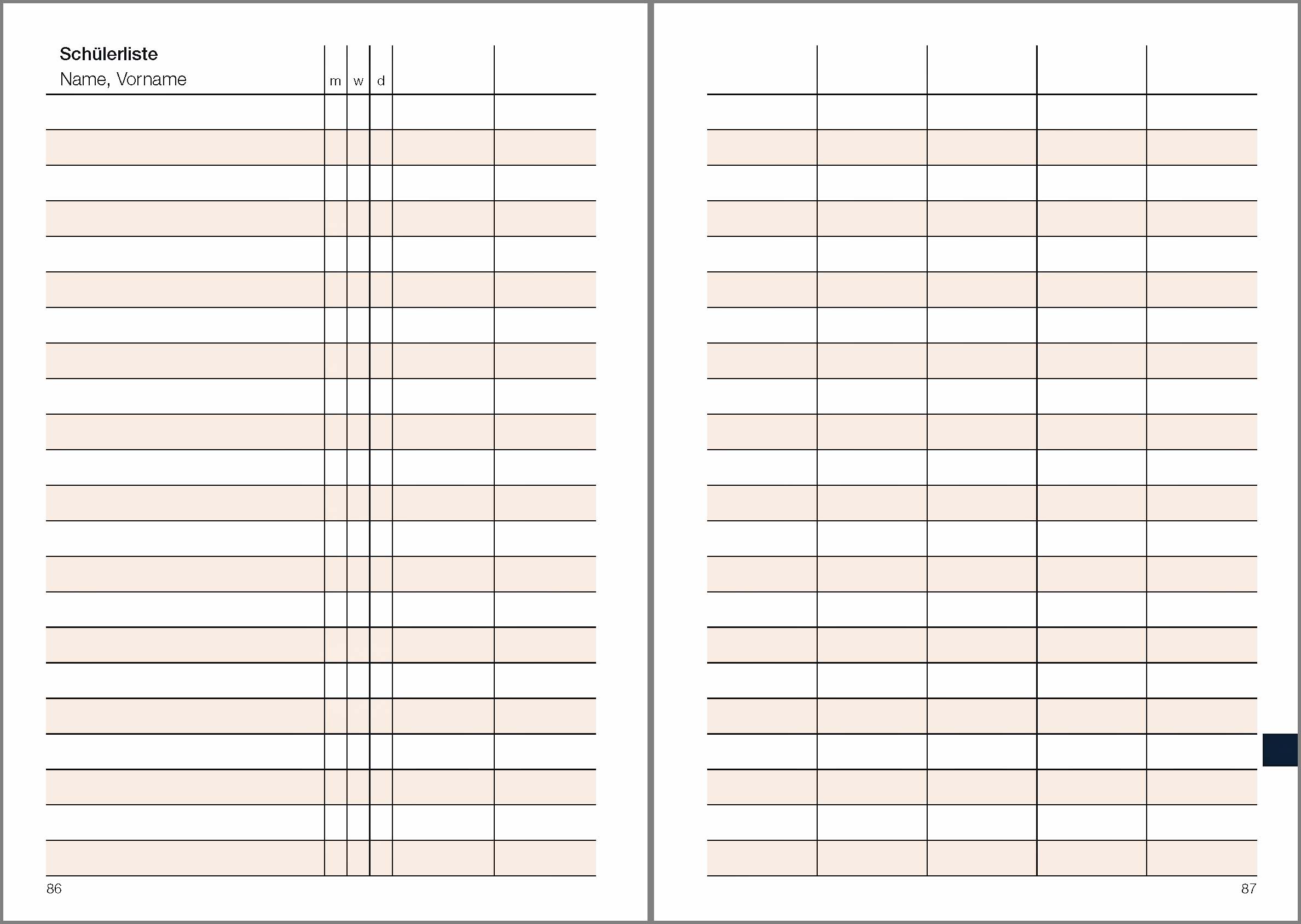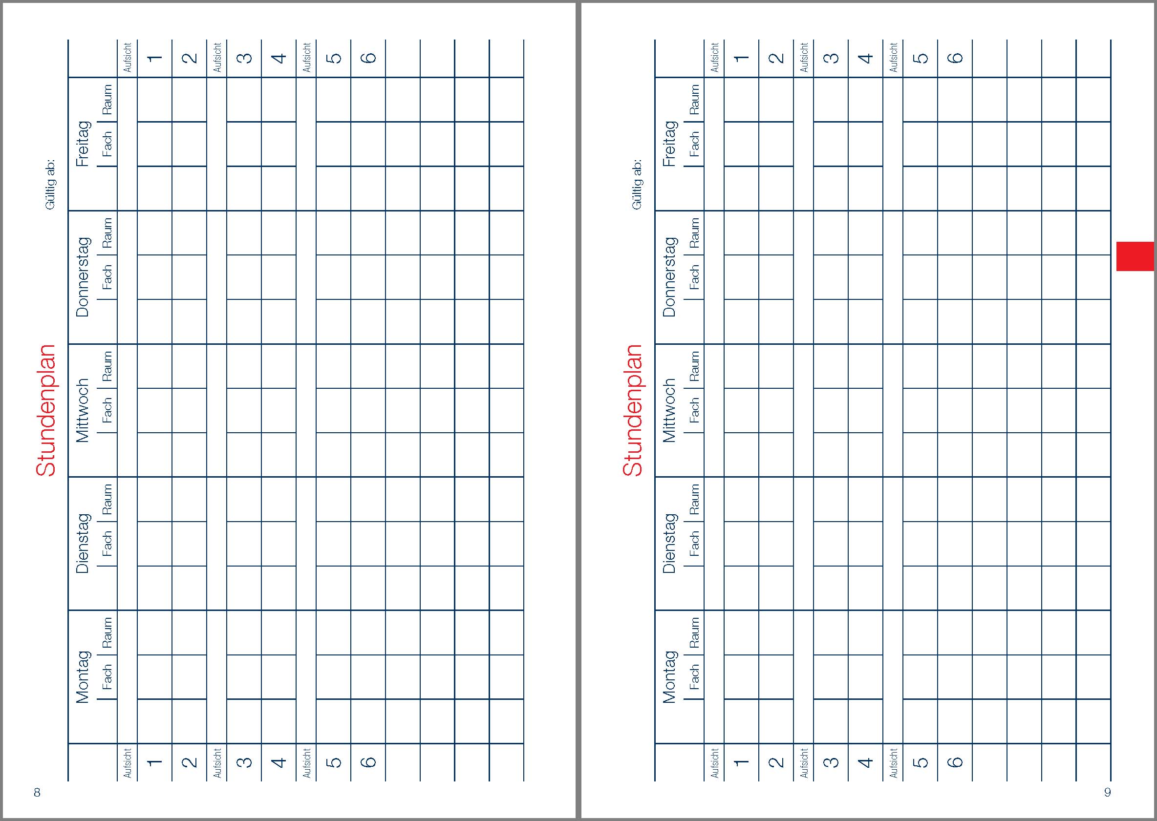 Minimalistischer Lehrerkalender für die wichtigsten Funktionen im Schulalltag als ständiger Begleiter, passt auch in die kleinste Jacken- oder Gesäßtasche. Eine Woche auf einer Seite.