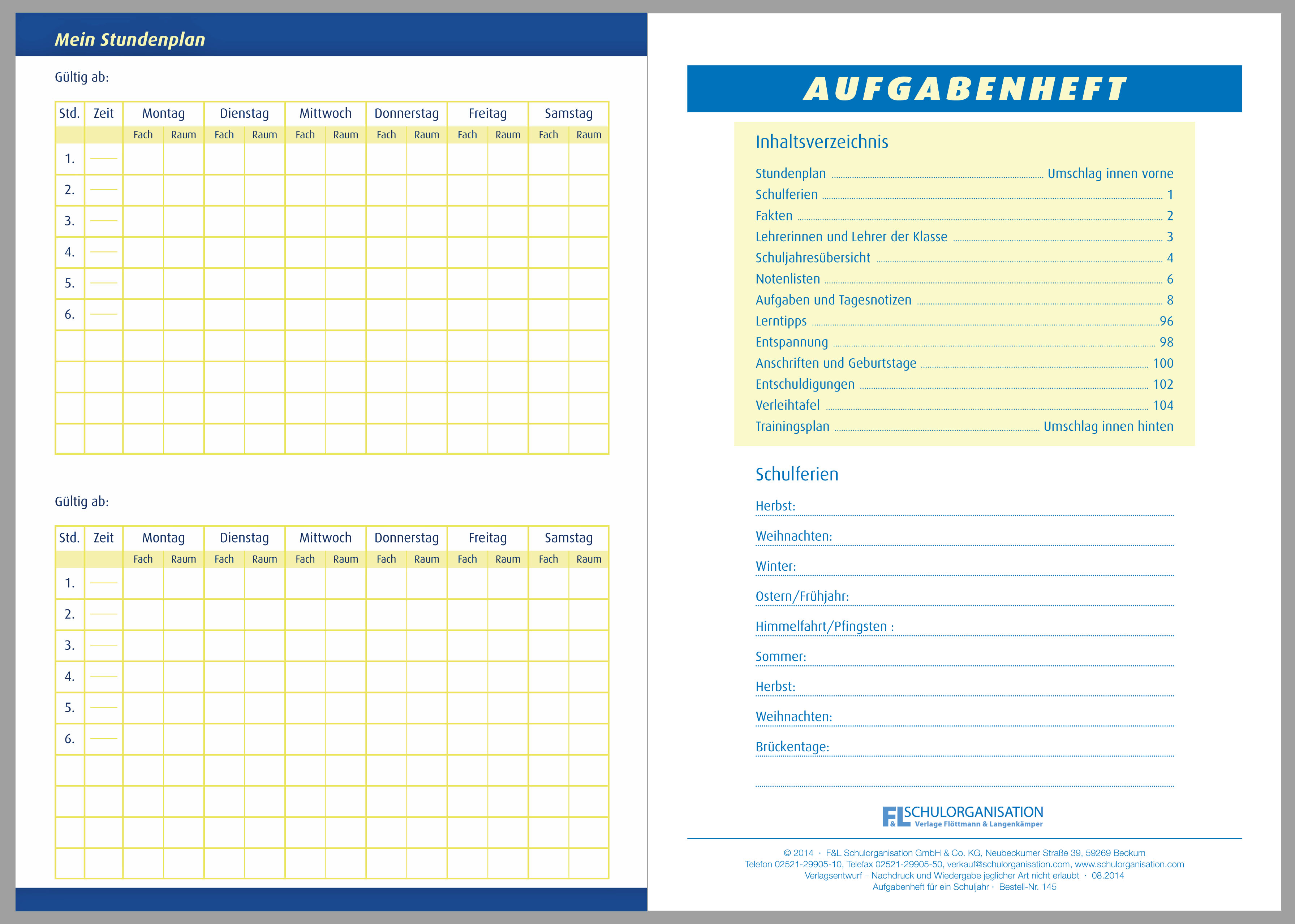 zur Schule und zum Schulleben. Das Heft enthält Angaben zu privaten Dingen