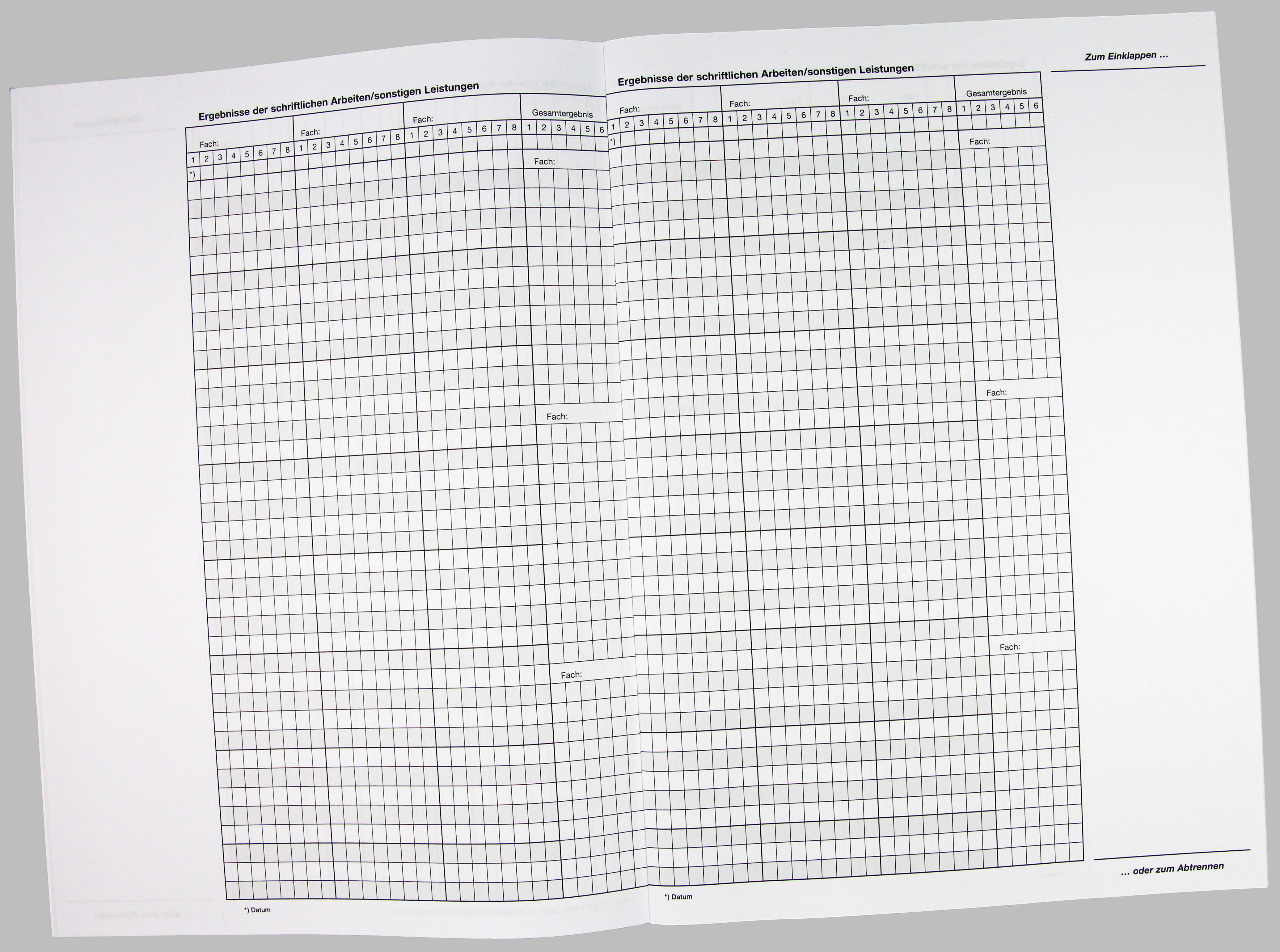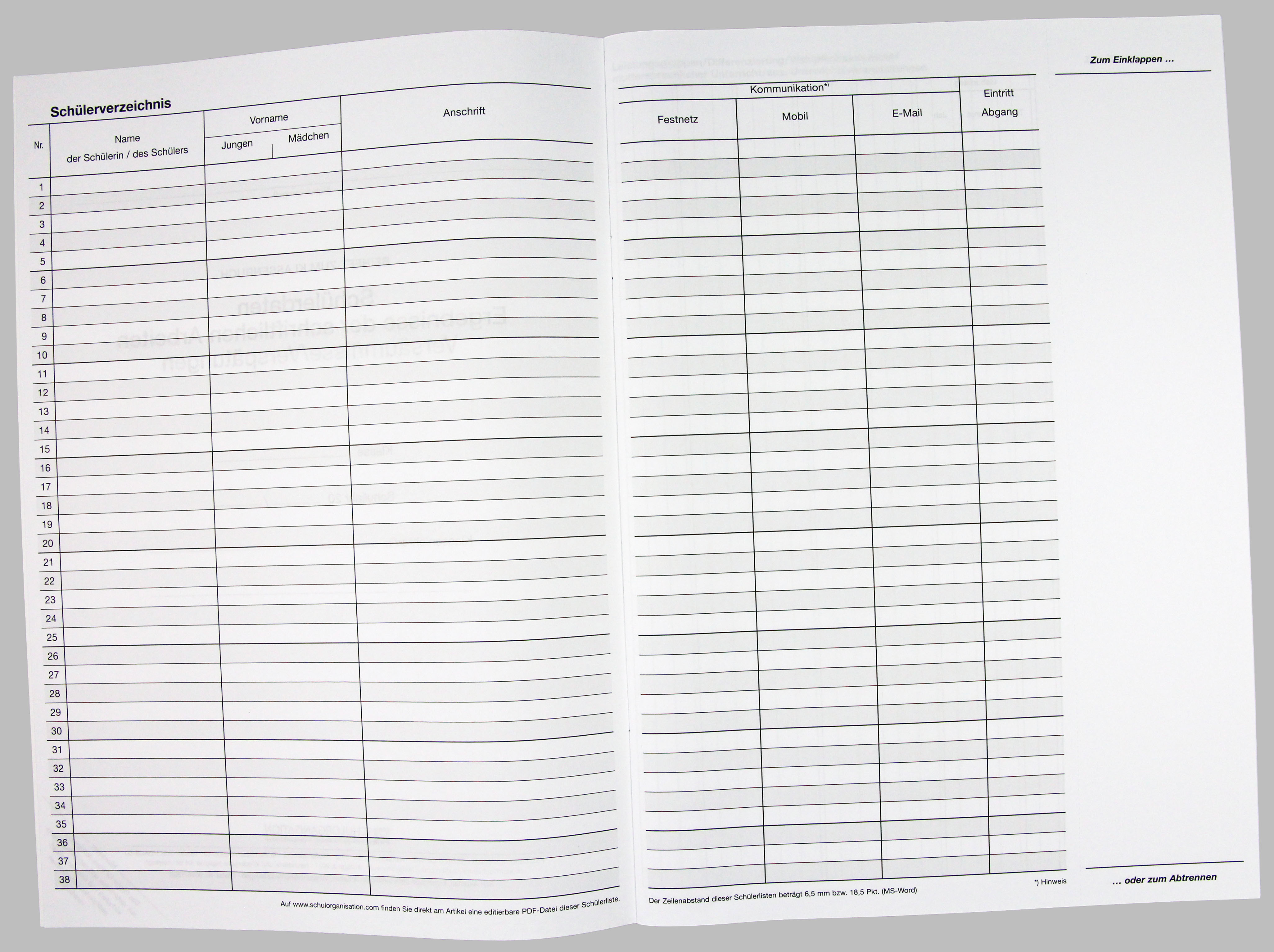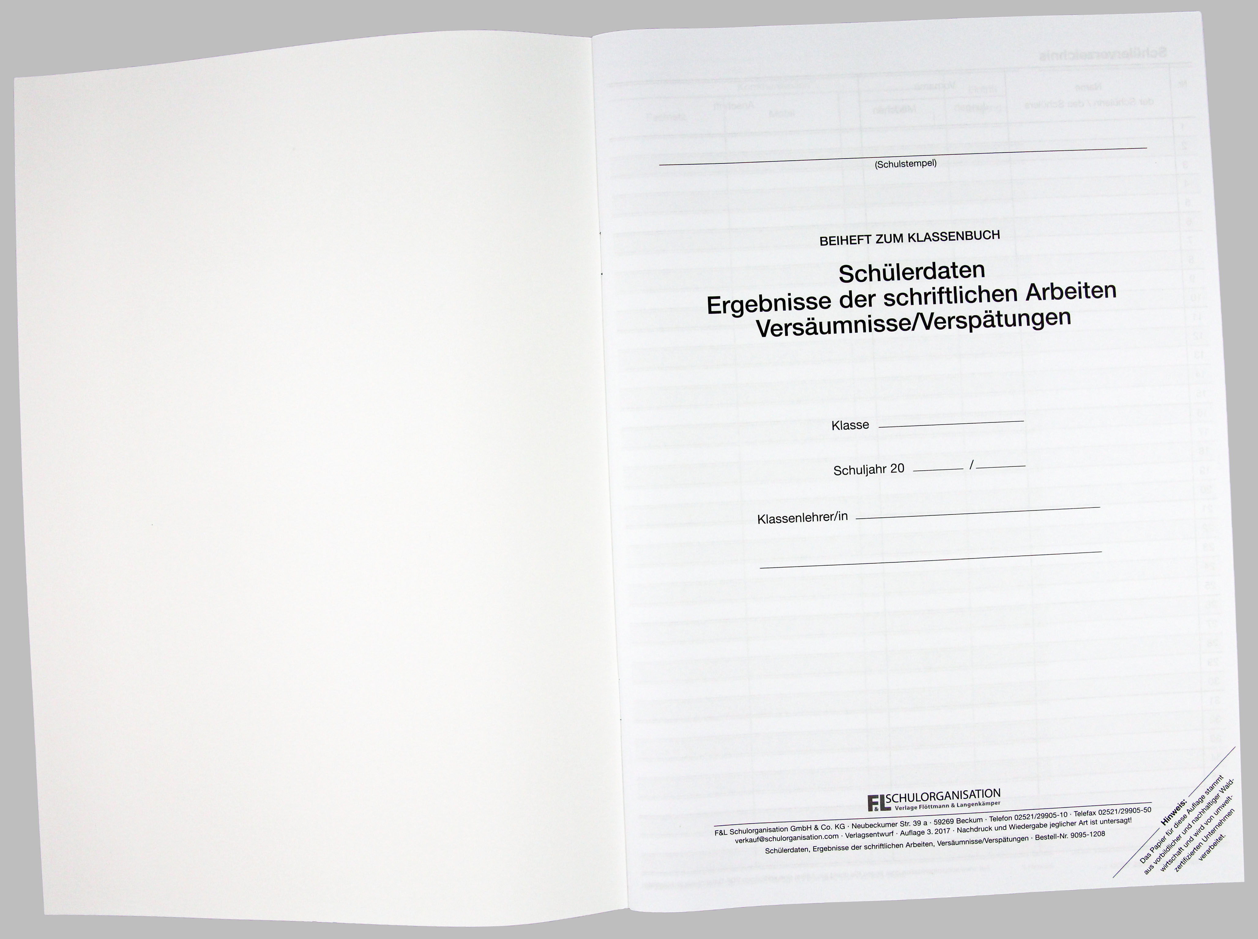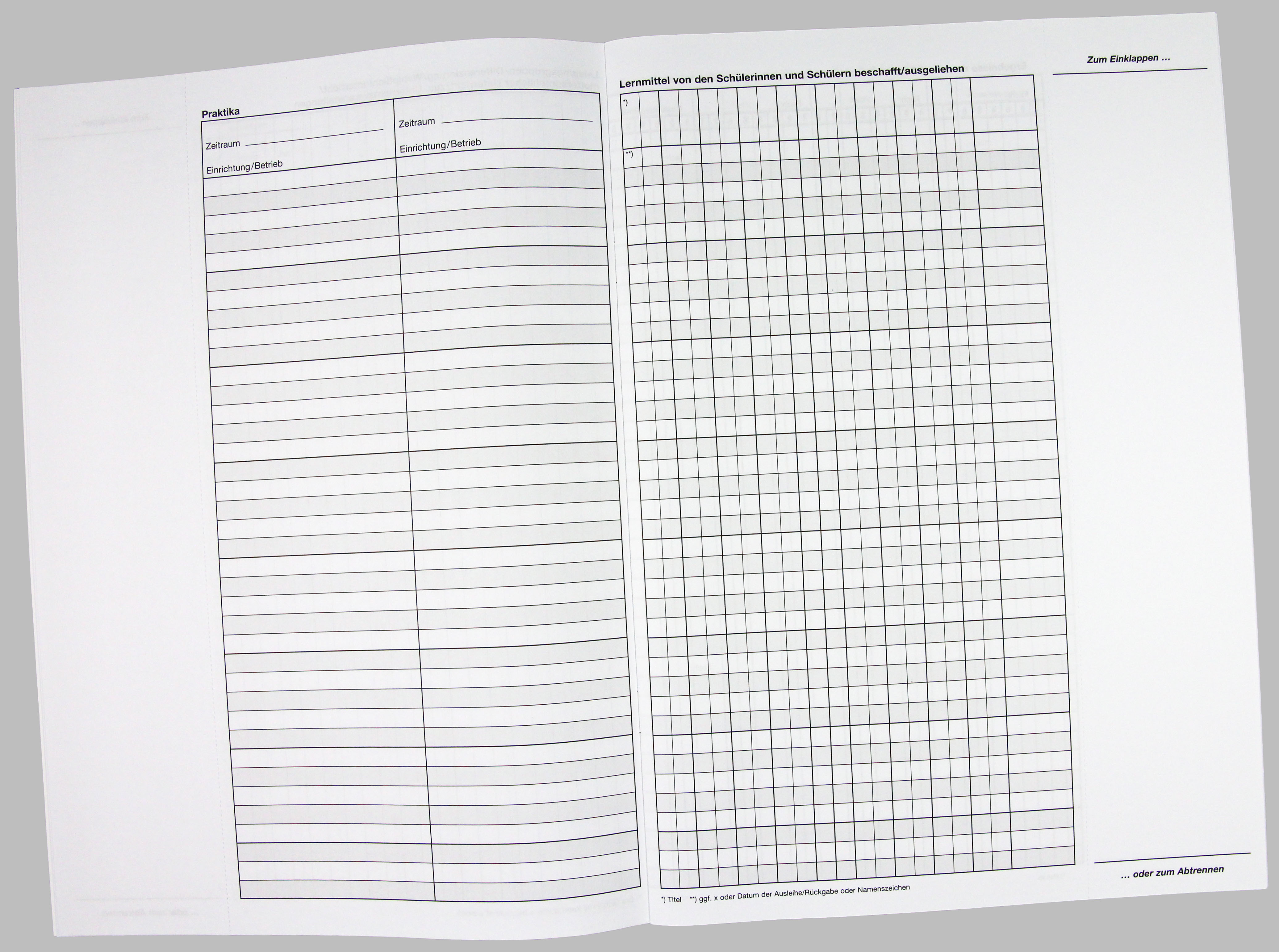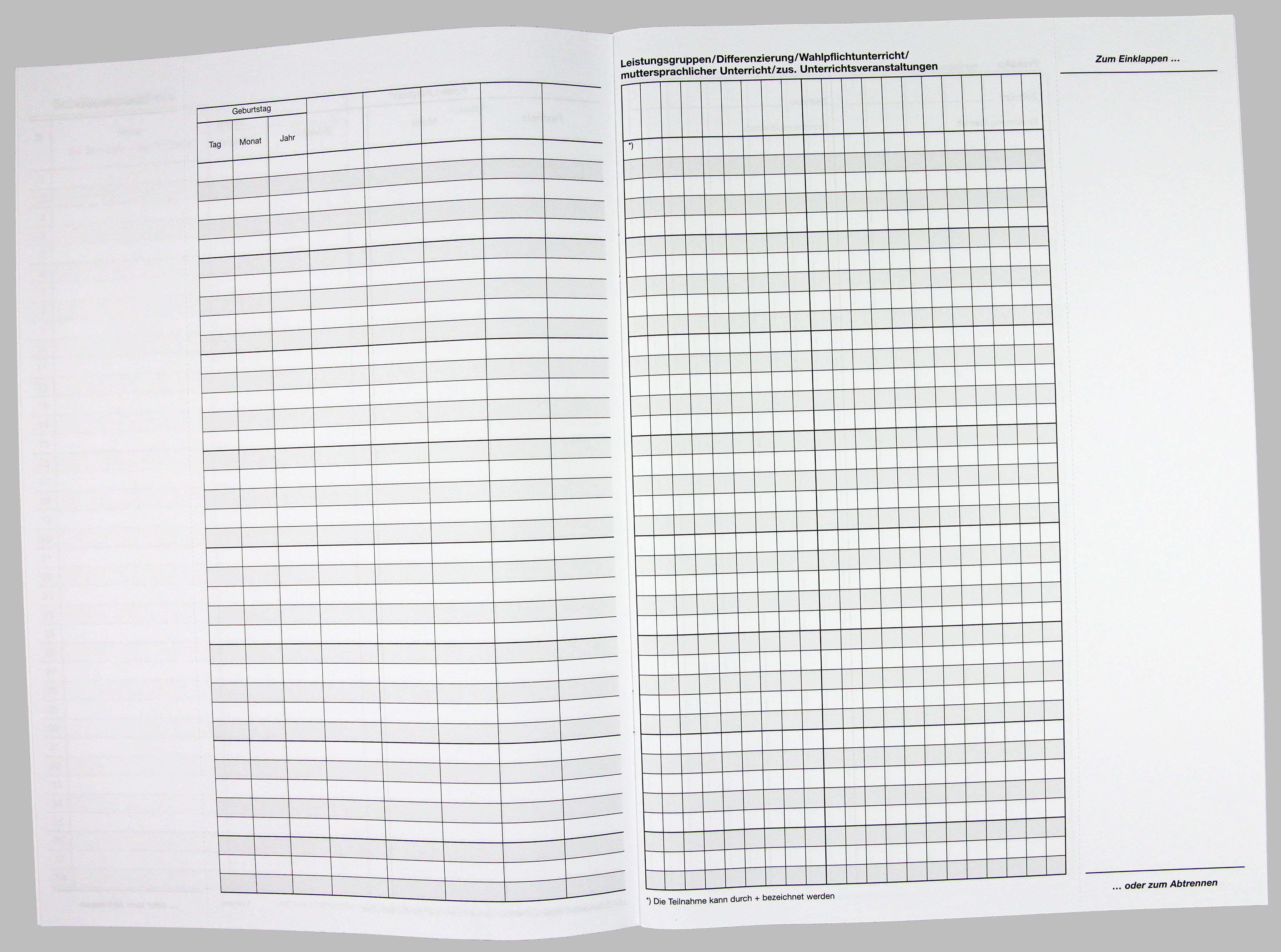 Beiheft zum Klassenbuch in kombinierter Form, zum Eintragen der Schülerdaten