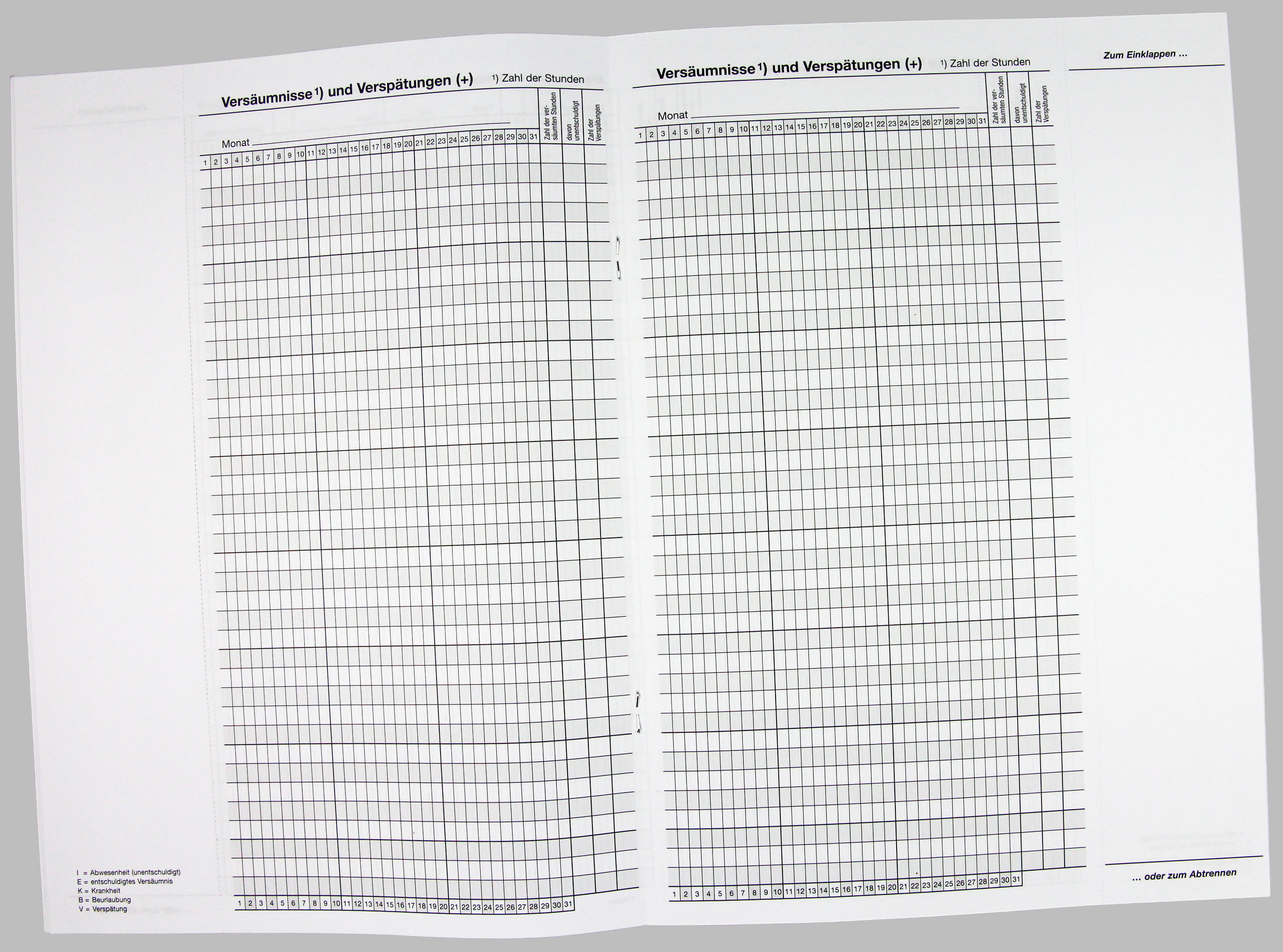 Versäumnislisten in Registerschnitt.