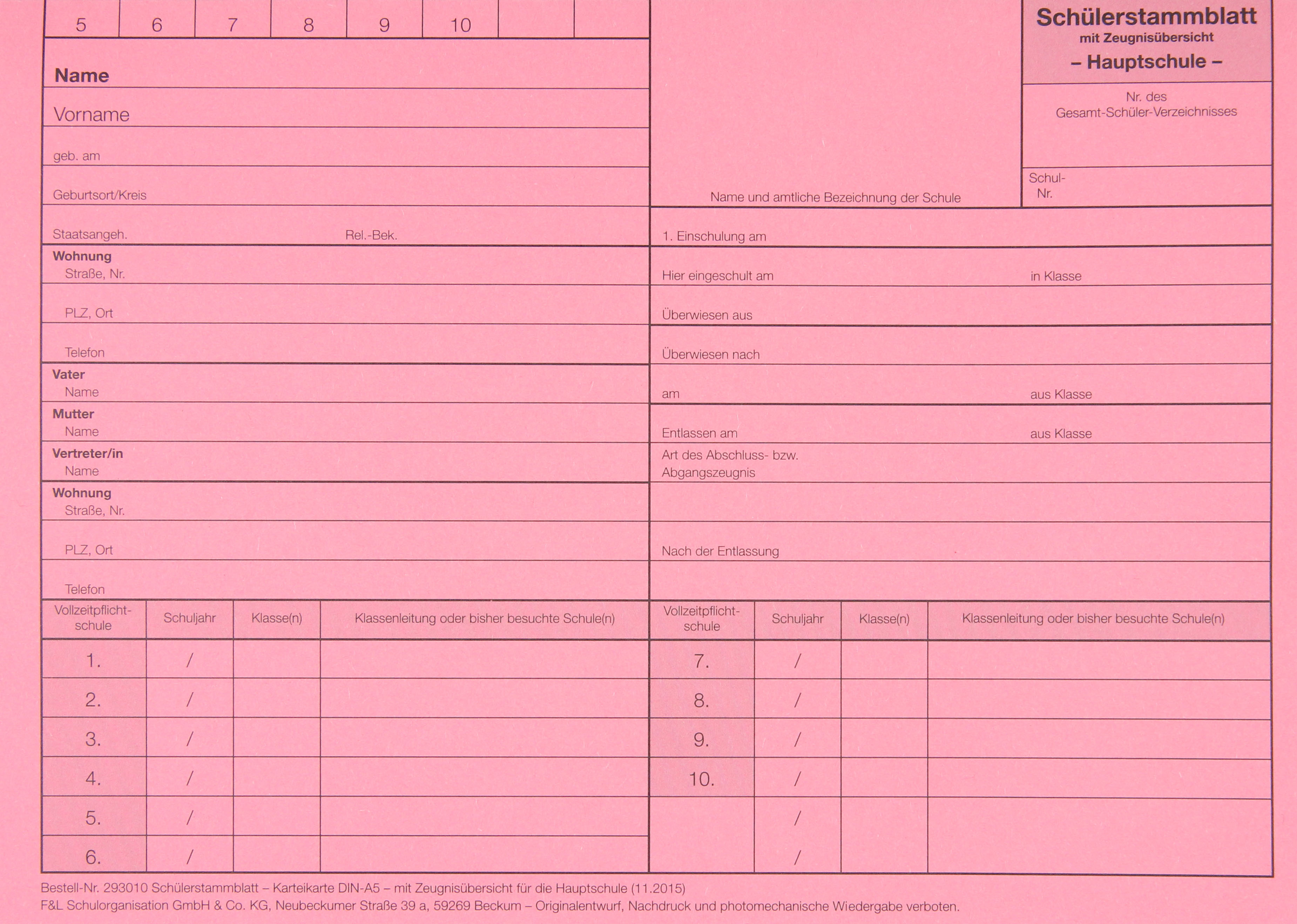 Eigenschaften "Schülerkarteikarte Hauptschule"