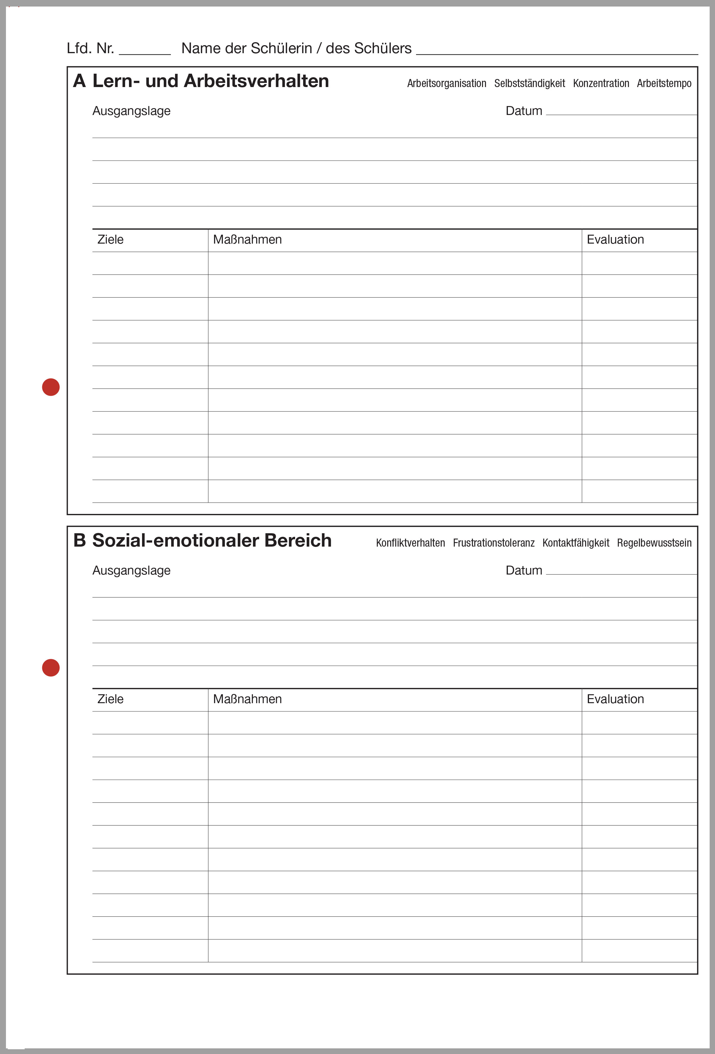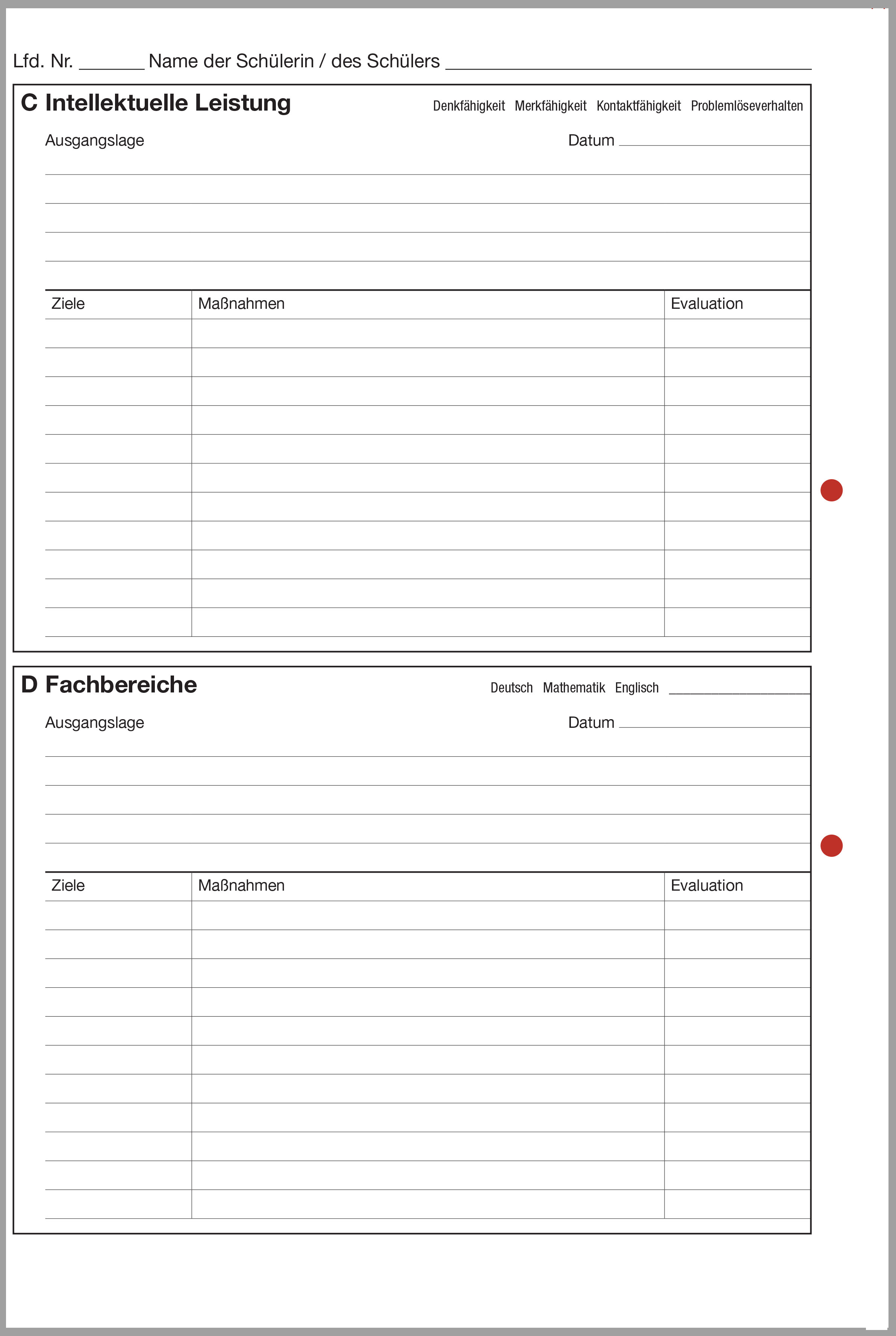 der Entwicklung der einzelnen Schülerinnen und Schüler können die Förderpläne durch die feine Perforation