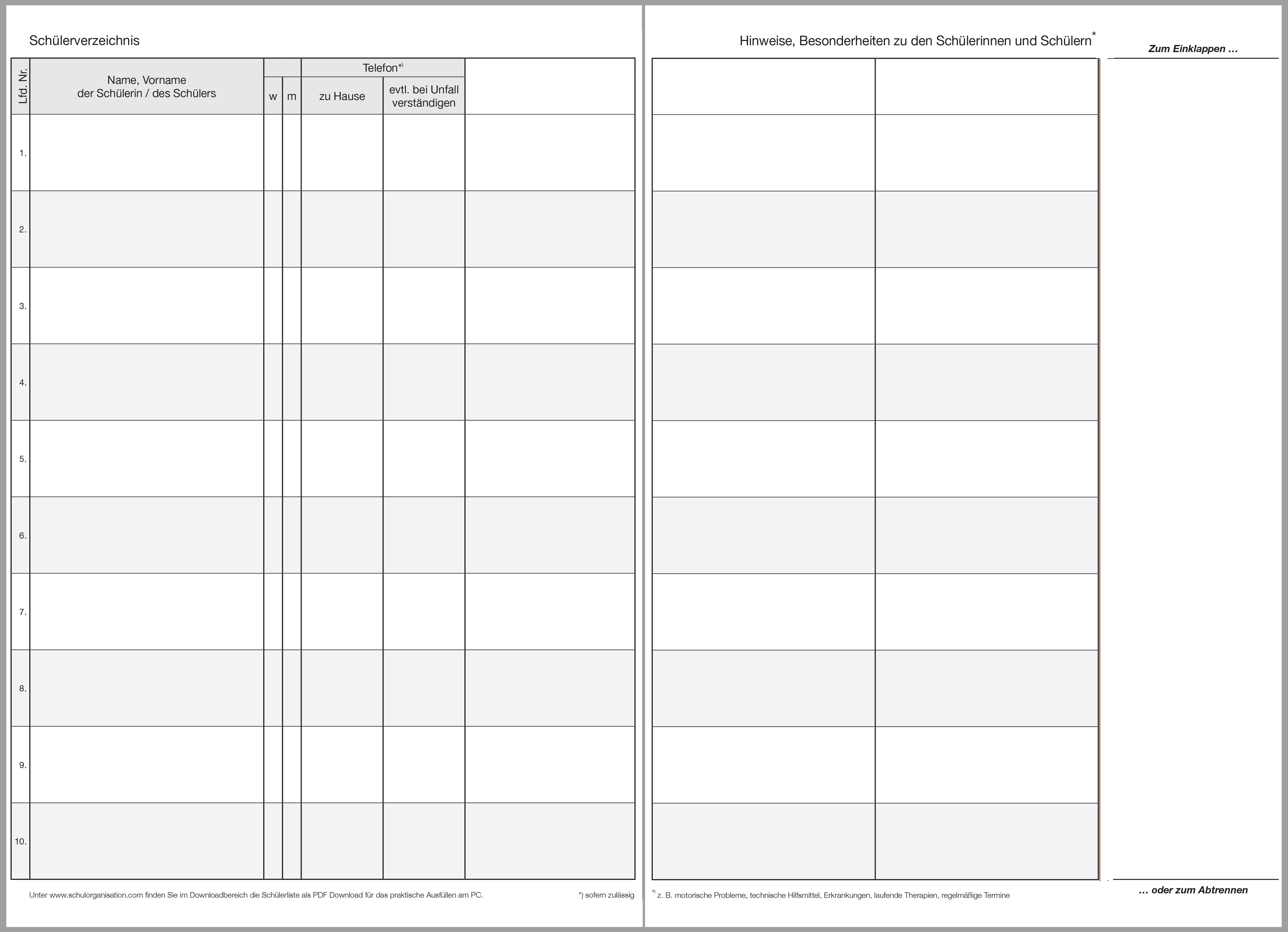 leicht herausgetrennt und in der Schülerakte langfristig archiviert werden.