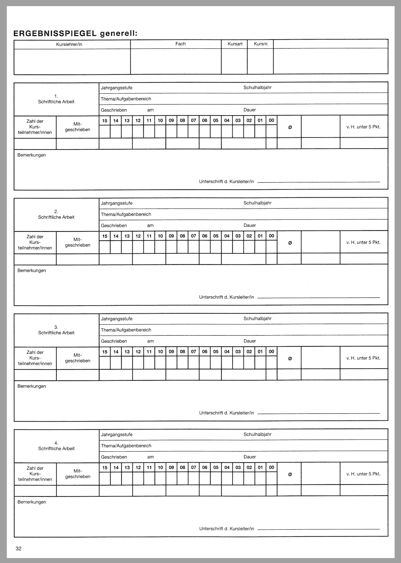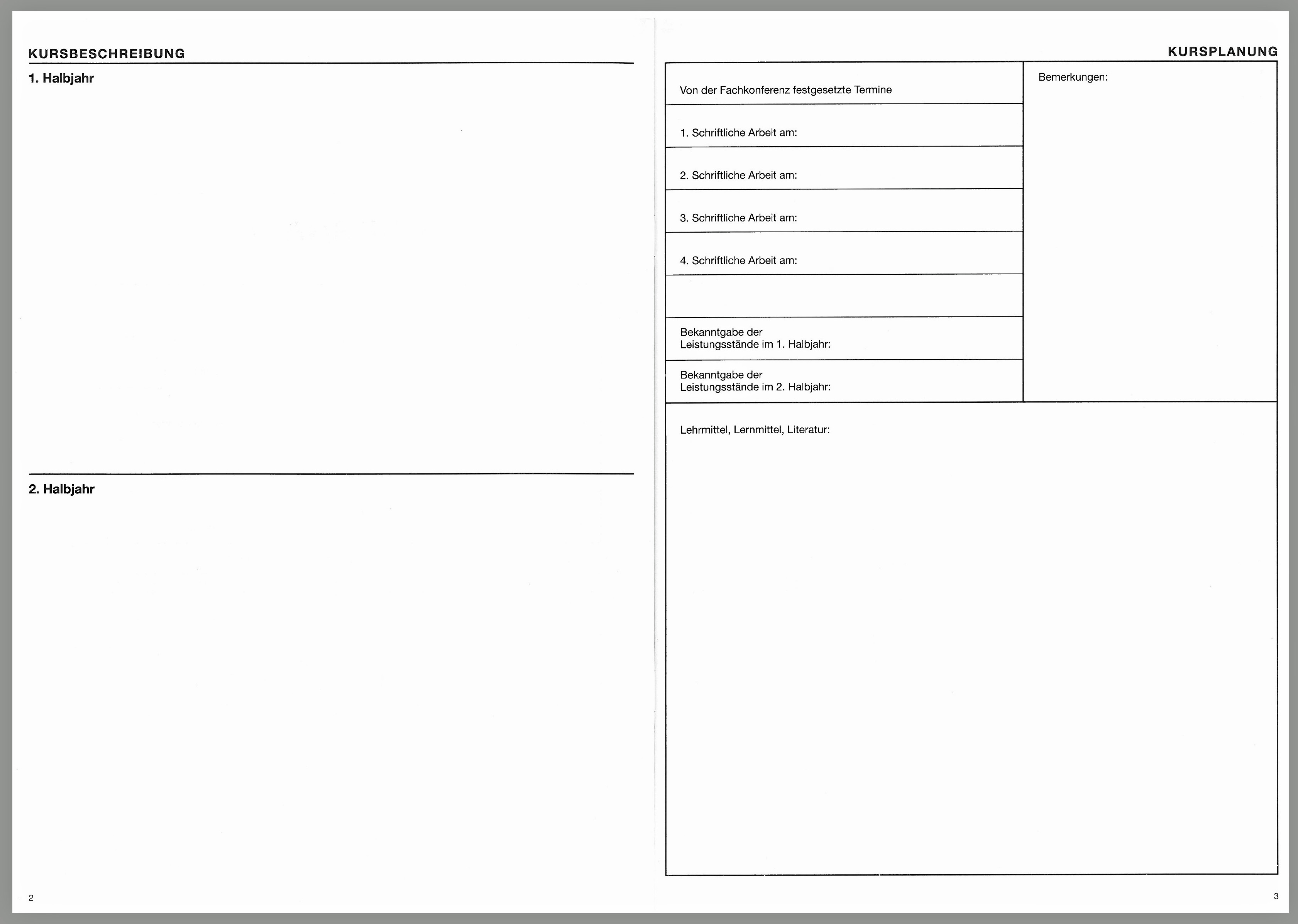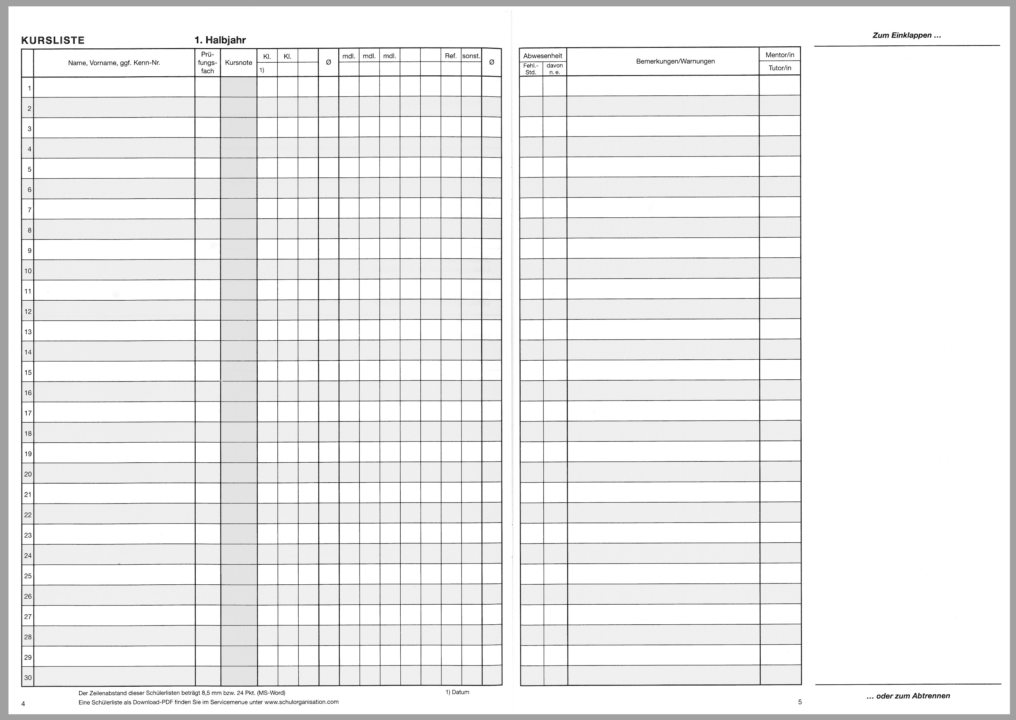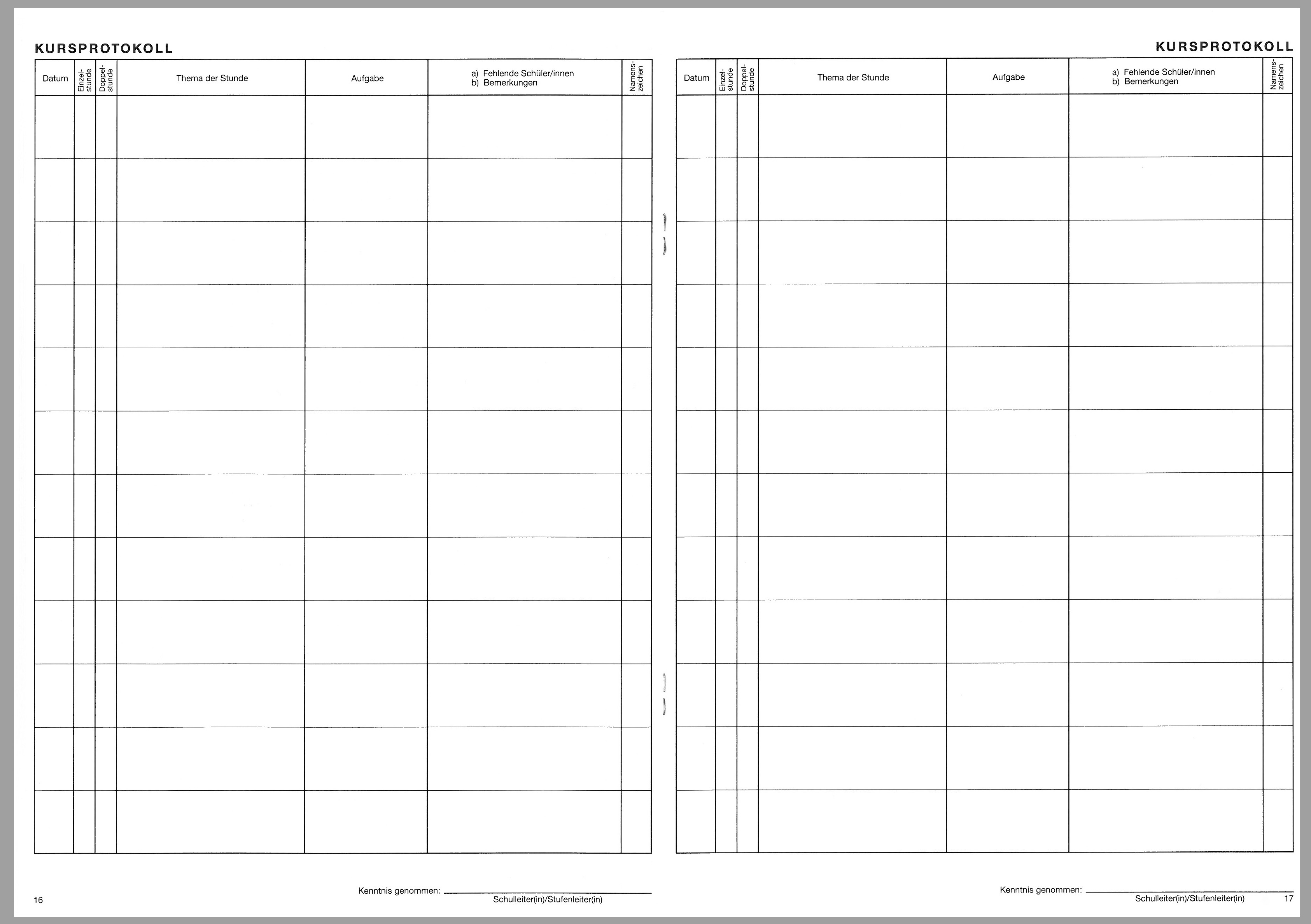 Kursheft speziell für die gymnasiale Oberstufe mit Ergebnislisten und Kursprotokoll