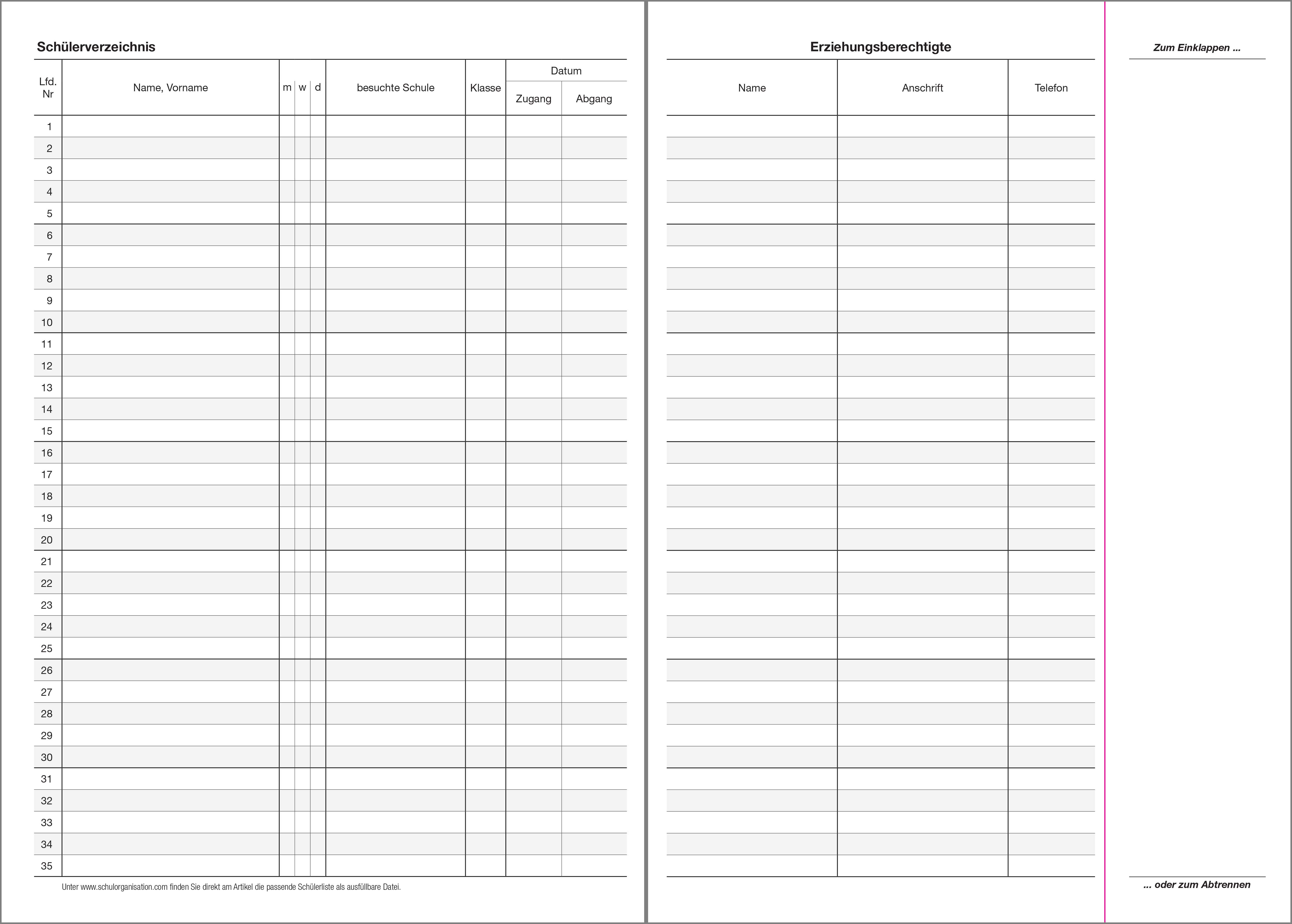 mit Versäumnisliste und Unterrichtsberichten, für ein Schuljahr.