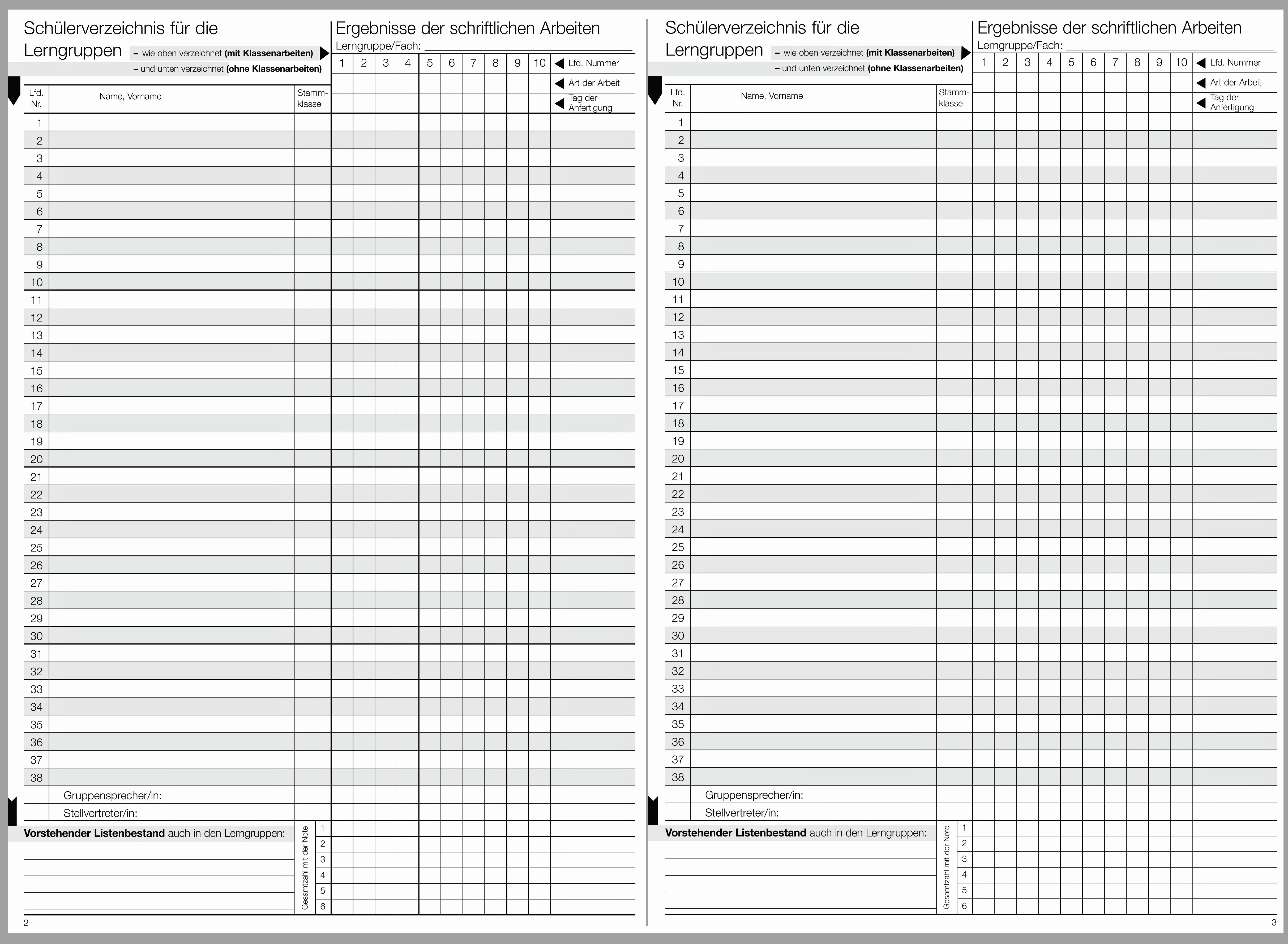 Lerngruppenheft für den Unterricht im Wahlpflichtbereich mit Schülerverzeichnissen