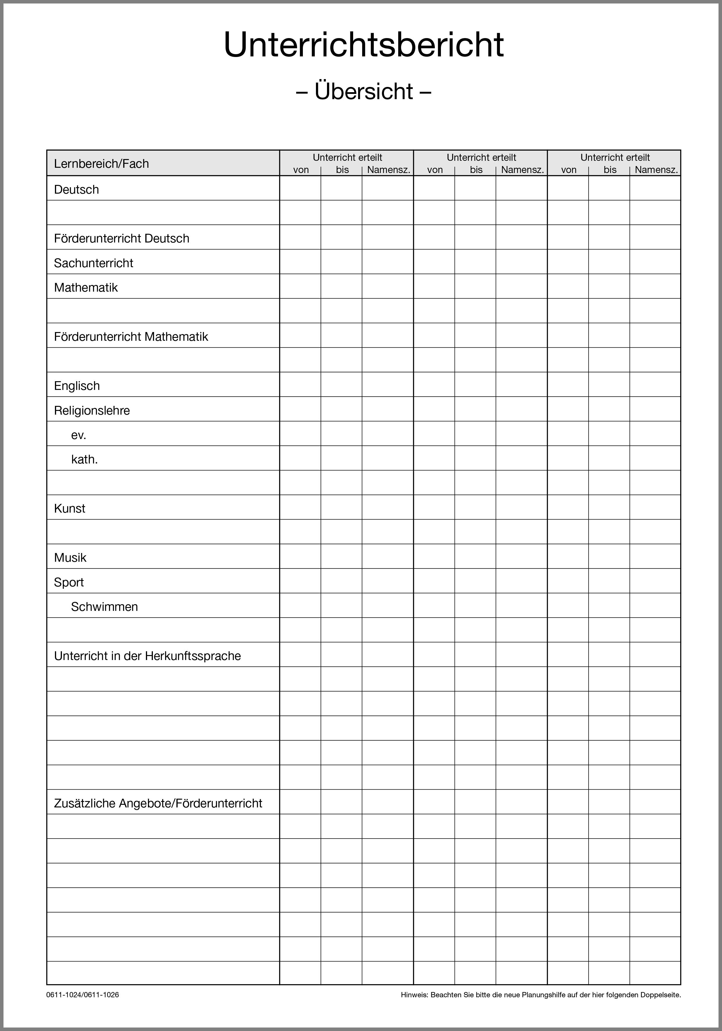 Dieses Klassenbuch mit dem PVC Einband wird nicht mehr produziert. Bitte wählen Sie das Klassenbuch mit dem umweltfreundlichen Einband (identischer Inhalt) 0611-1026-U1.