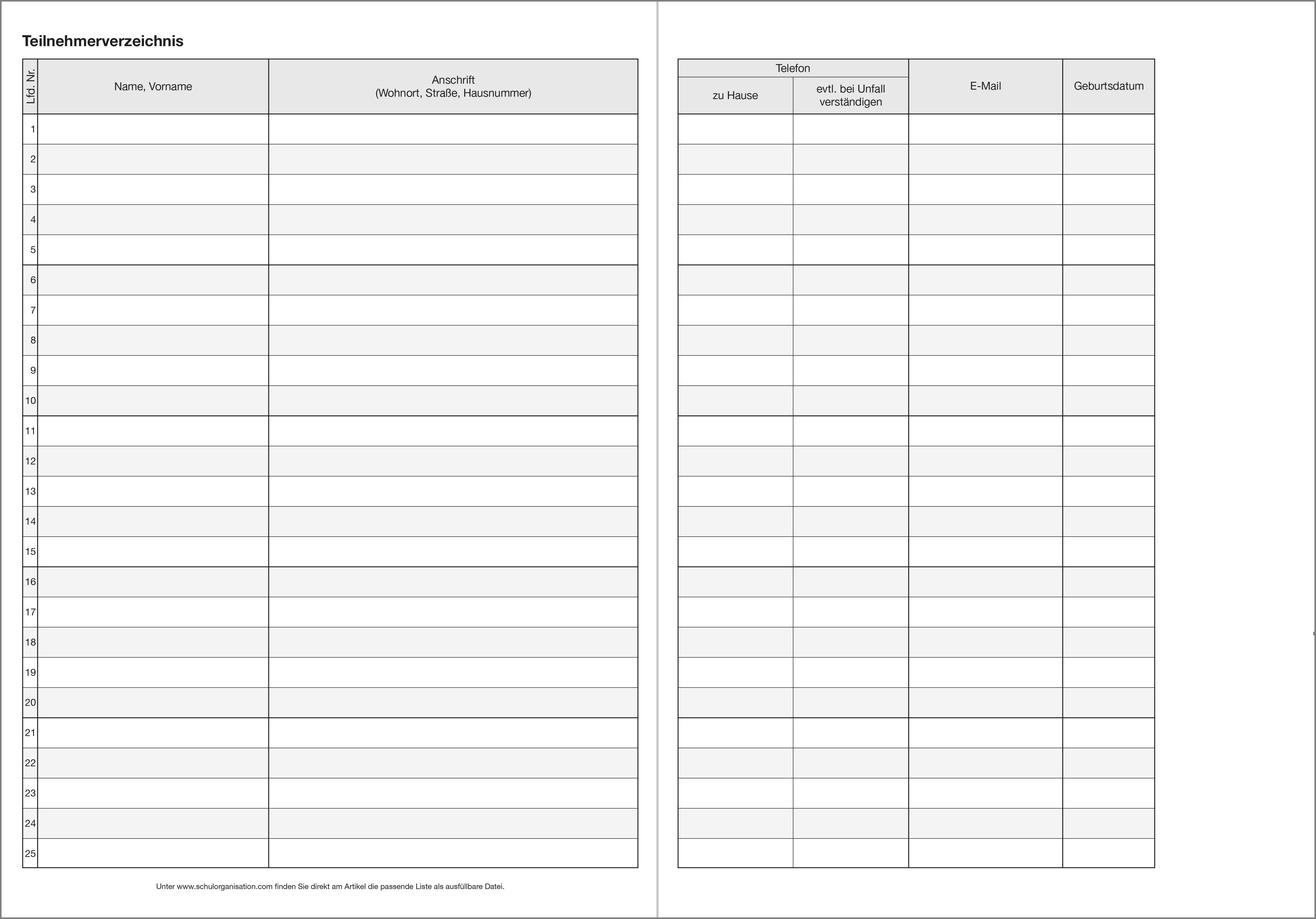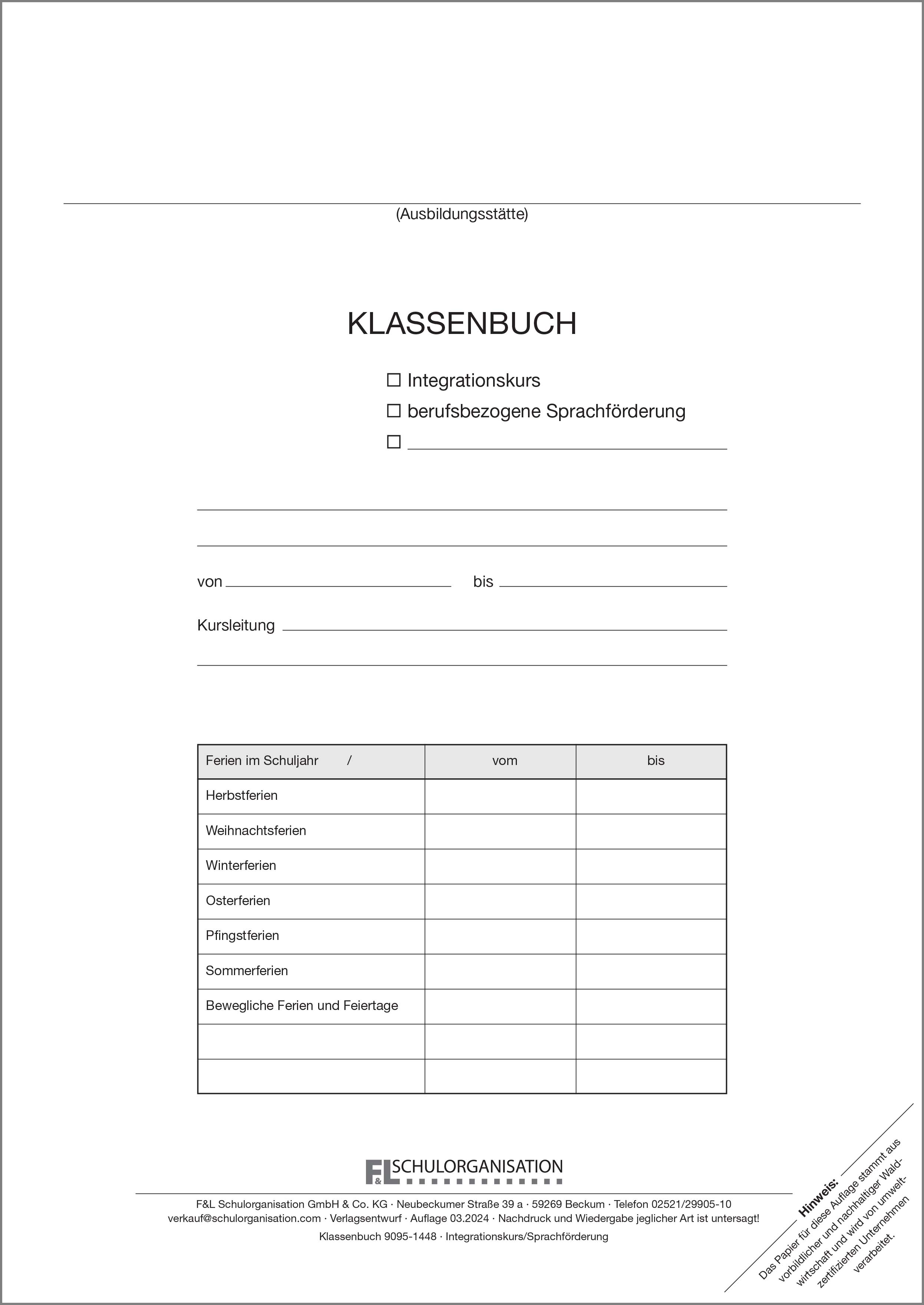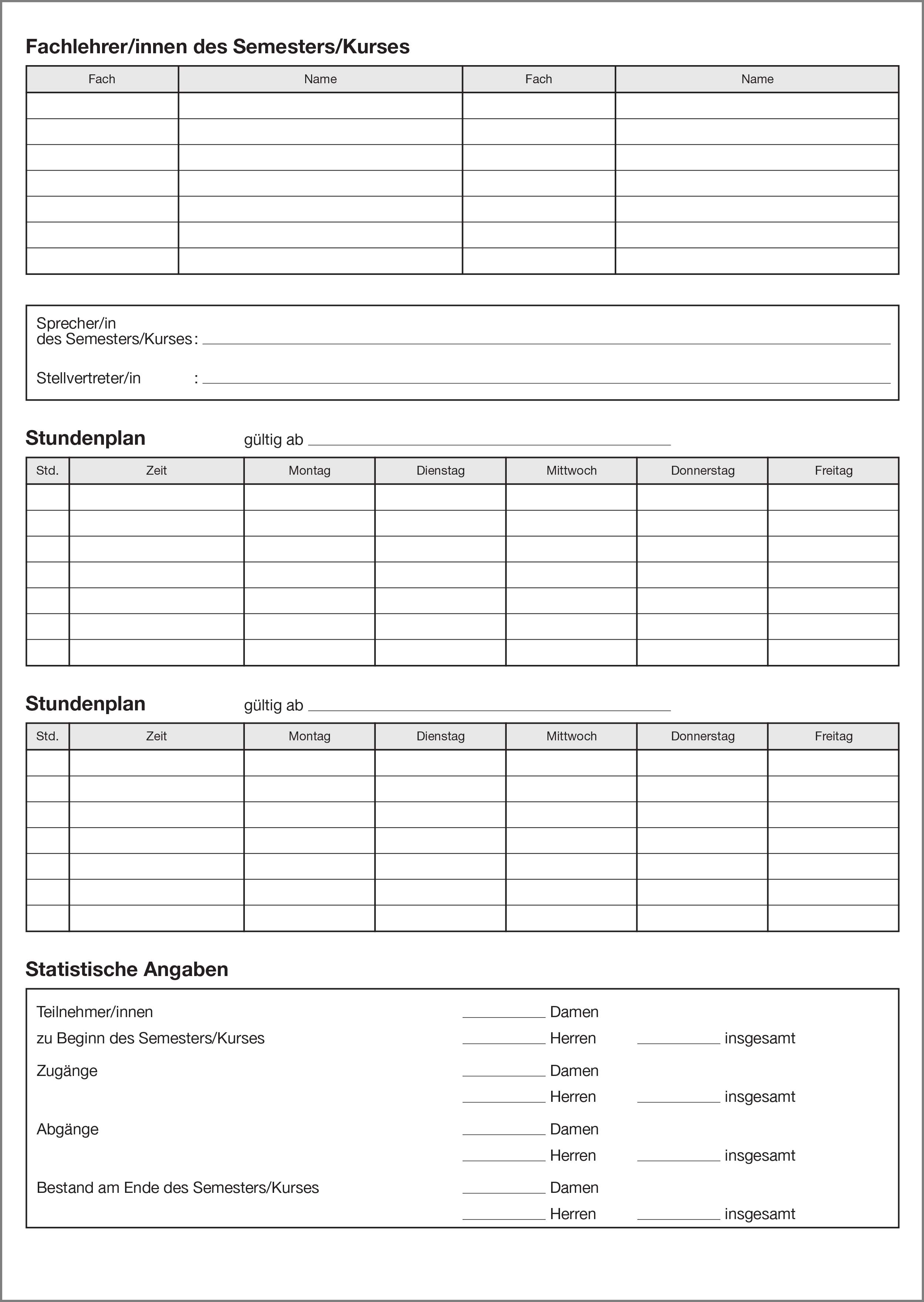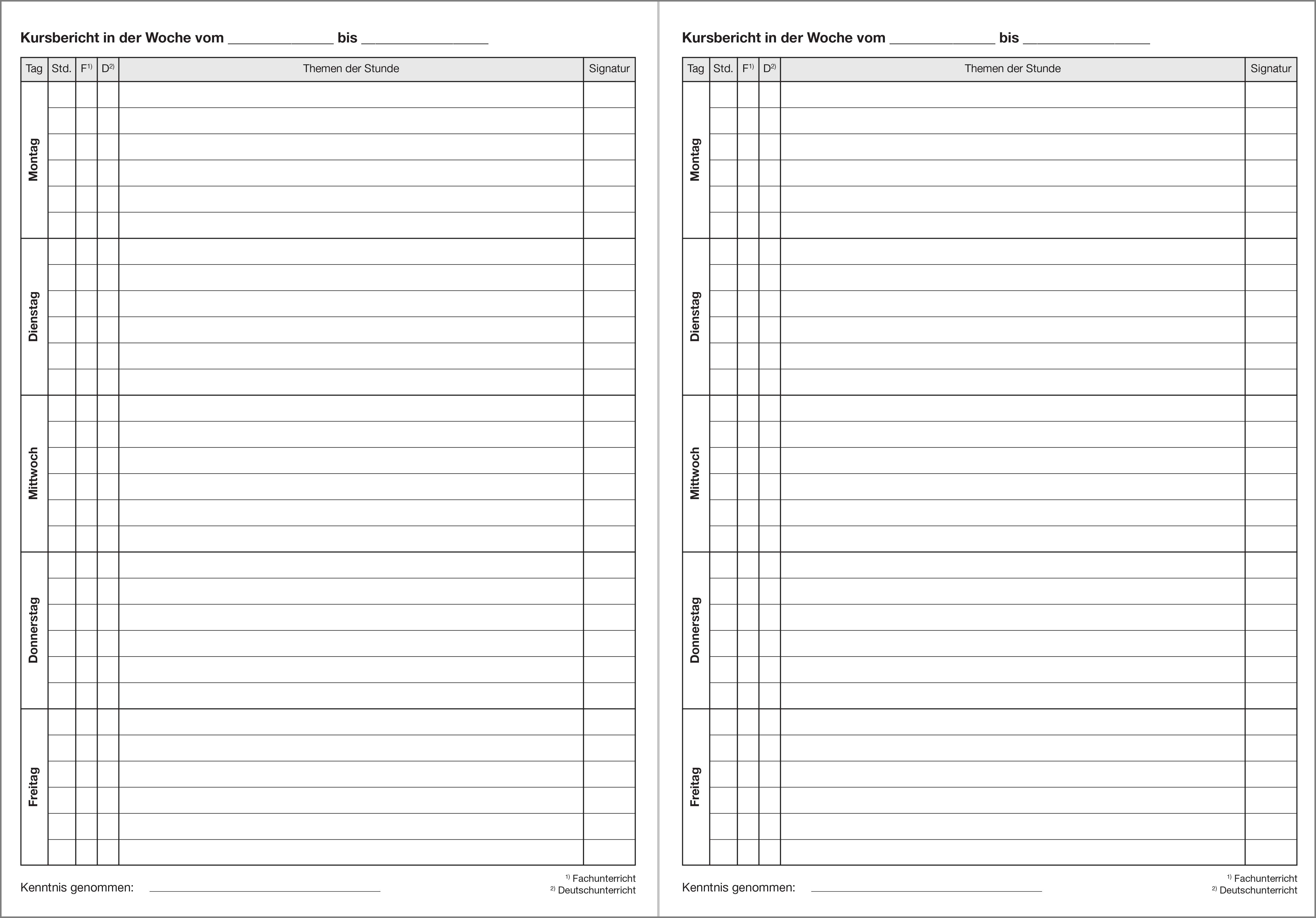 mit Teilnehmerverzeichnis, Unterrichtsberichten in wöchentlicher Aufteilung für bis zu 28 Wochen