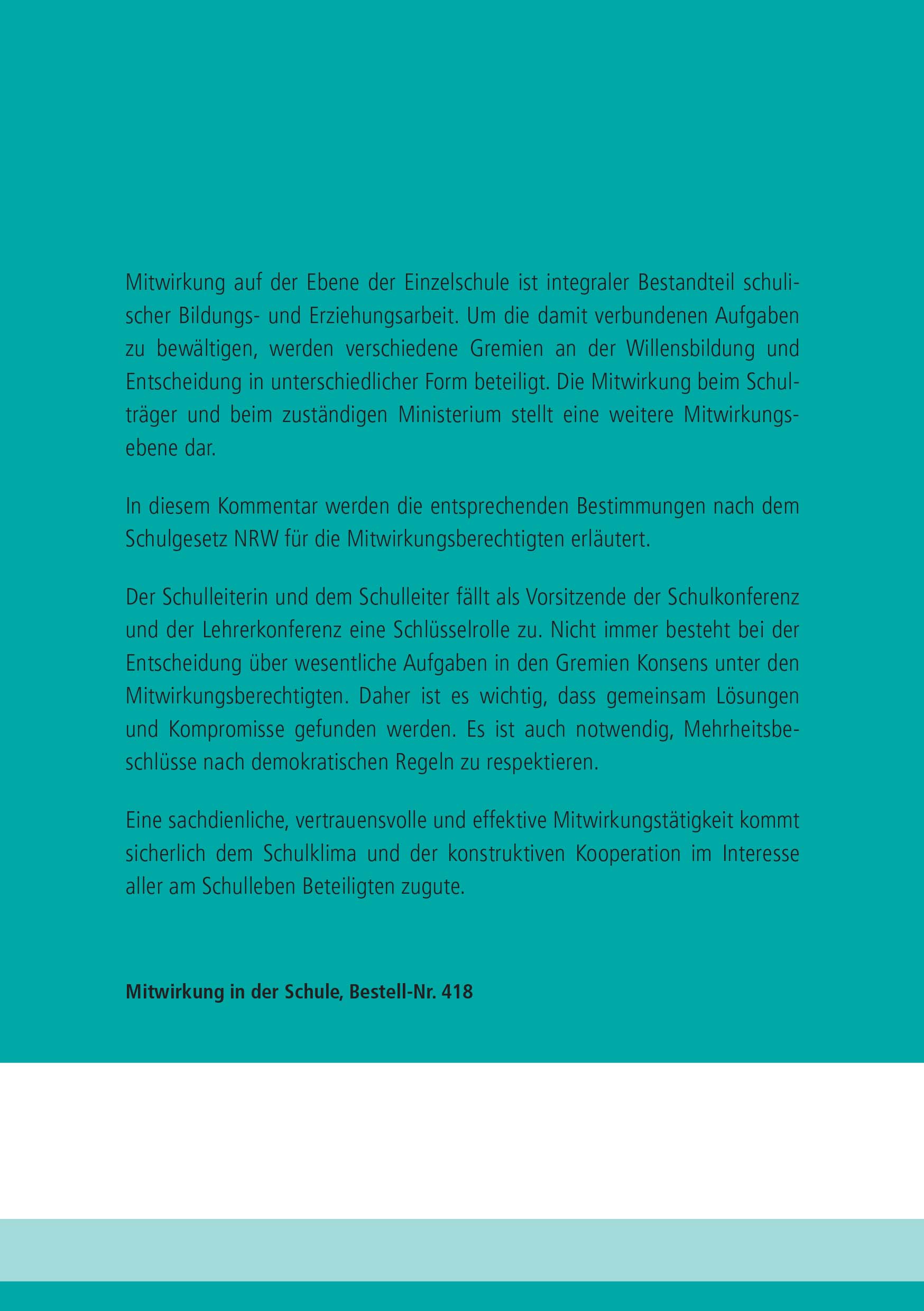 Produktinformationen "Mitwirkung in der Schule Schulrecht NRW"