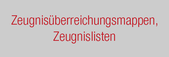 Zeugnisüberreichungsmappe und PräsentationsmappeAls Zeugnisüberreichungsmappe für die feierliche Übergabe des Abschlusszeugnisses, hergestellt aus feinem weißen Karton, je nach Verfügbarkeit glatt oder mit Leinenstruktur und mit dem Logo der Schule bedruckt, gerne auch als Farbdruck. Das entspricht dann dem feierlichen Rahmen.Als Präsentationsmappe bei der Einschulung neuer Schülerinnen und Schüler, d.h. das umfassende Informationsmaterial kann eingelegt werden, es macht einen guten Eindruck.Der Schuleindruck erspart Ihnen übrigens den Schulstempel und das bei deutlich besserer Qualität.Bedenken Sie bitte eine Bearbeitungszeit von ca. 2 Wochen. Das Schullogo bitte im Dateiformat PDF, BMP oder JPEG gerne als Mailanhang zusenden.Nutzen Sie bitte den gesonderten Bestellschein Zeugnismappen